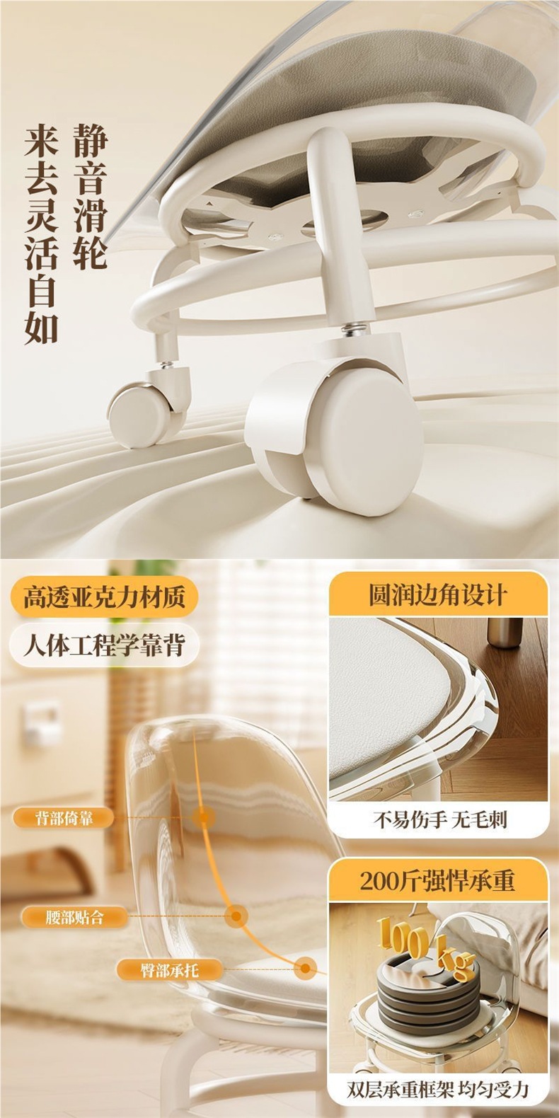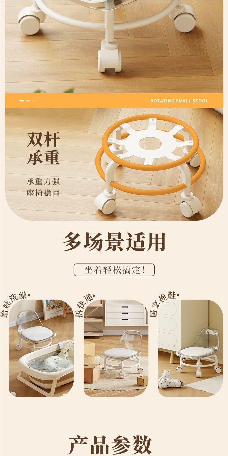 Низкий табурет с подлокотниками, маленький стул, бесшумный, с универсальными колесами, стильный табурет для детей