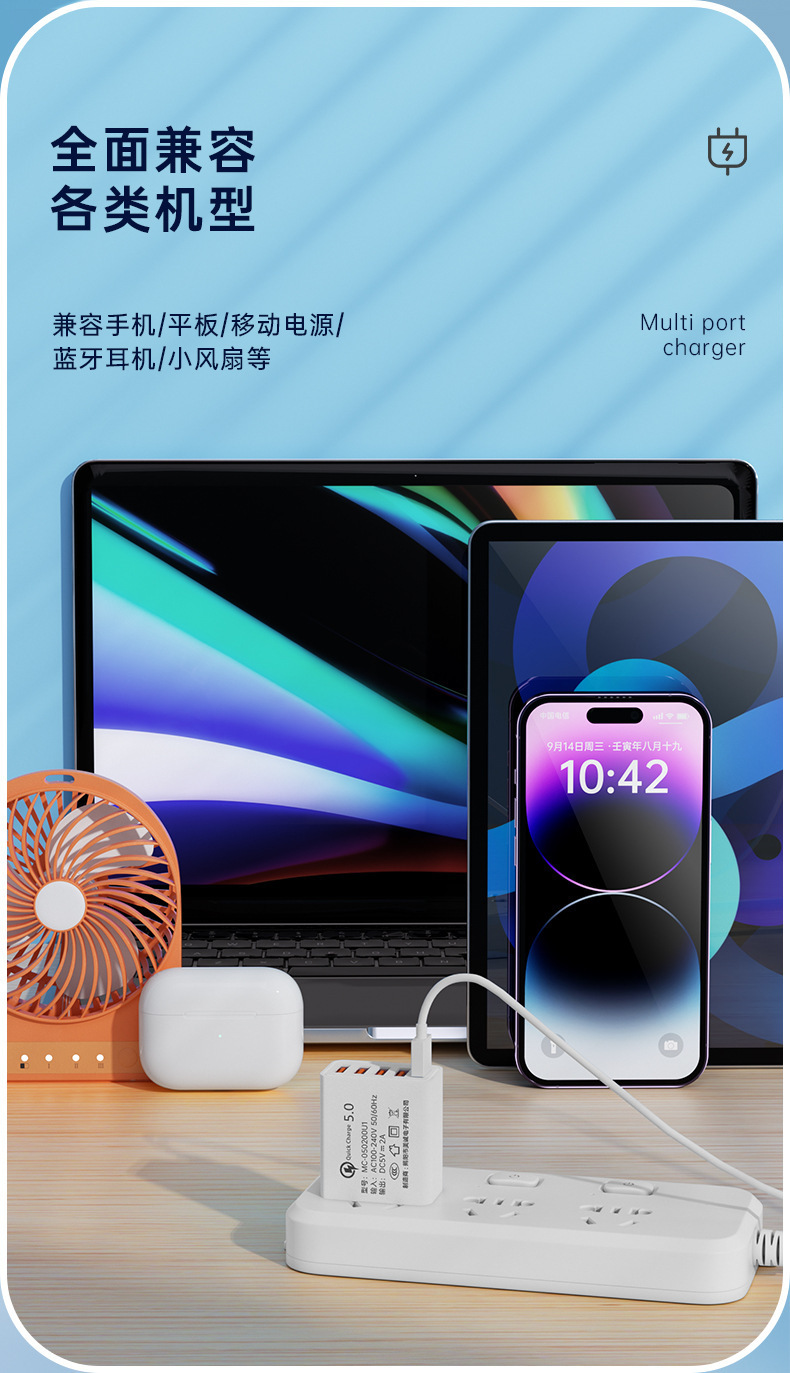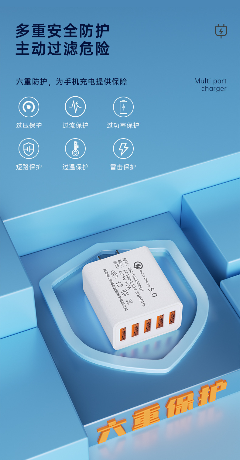 Путевой зарядное устройство 5v2a charging head 3c certified multi-port usb fast charging mobile phone charger multi-plug usb charging head wholesale