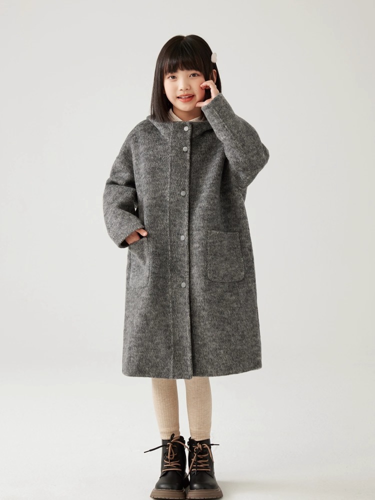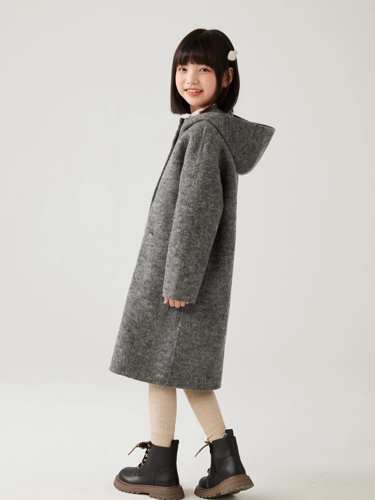 Шершавая куртка для детей, осень и зима, новый стиль, куртка для девочек, куртка с капюшоном для мальчиков средней длины