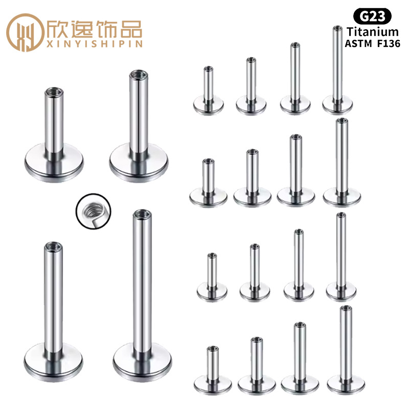 G23 титановый сплав с внутренней резьбой пирсинг-студ для губ, европейский и американский, с плоским основанием, замена штанги для серег