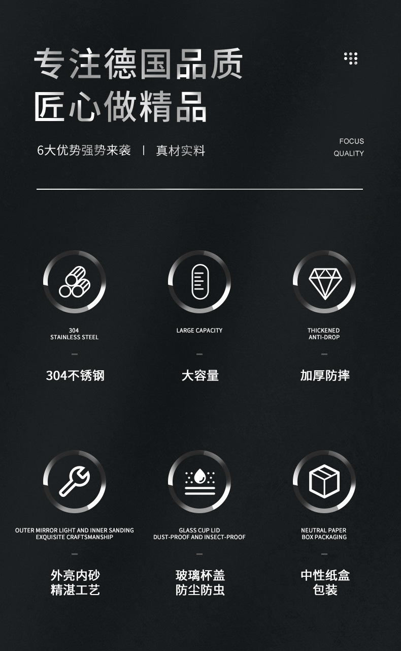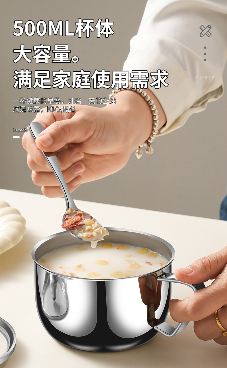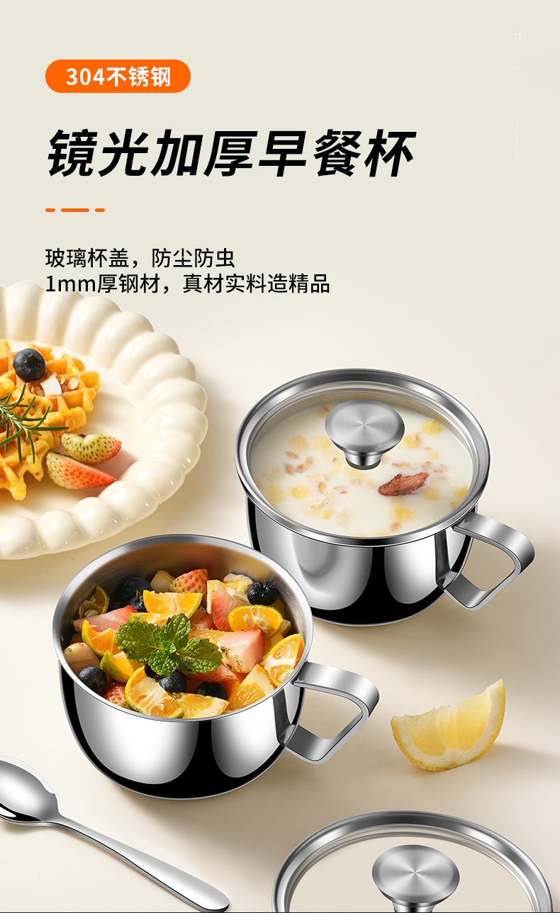 Утолщённая 304 нержавеющая сталь чашка для завтрака, пищевая молочная чашка с крышкой, для офисных работников и студентов, чаша для быстрого приготовления лапши, противоударная