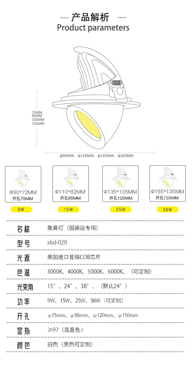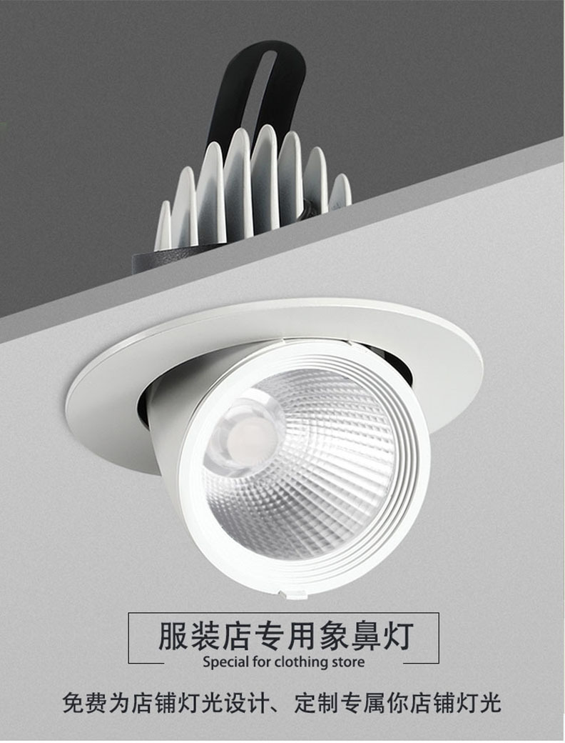 Лампа в форме носа слона, светодиодный точечный светильник, встраиваемый, коммерческий, высокая цветопередача 4500K, специальный безстробоскопический светильник для магазина, алюминий