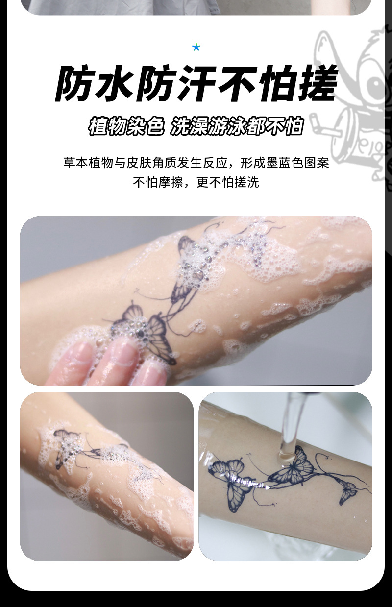 Татуировки наклейки с травяным соком полусм. свежие растения долговечные водонепроницаемые неотражающие для мужчин и женщин