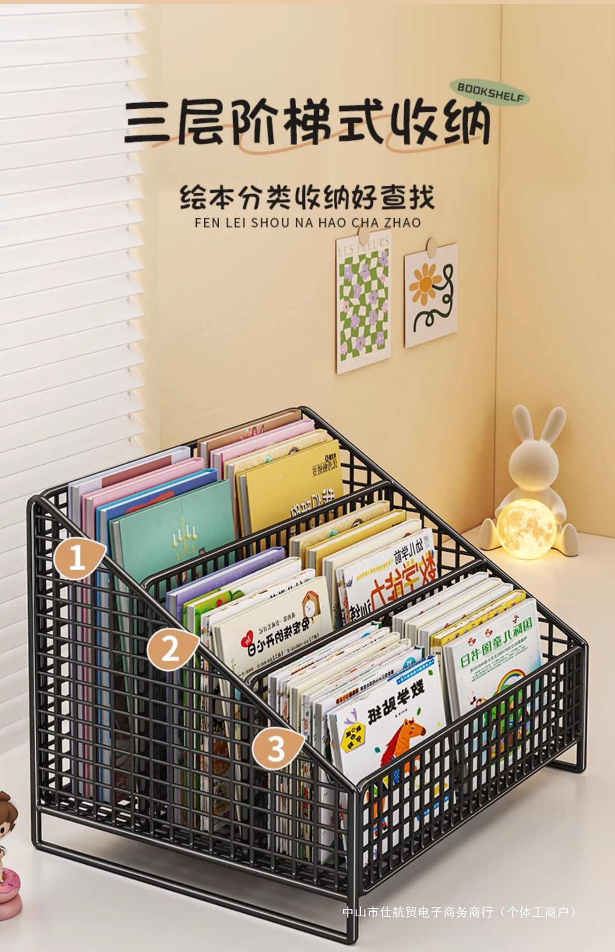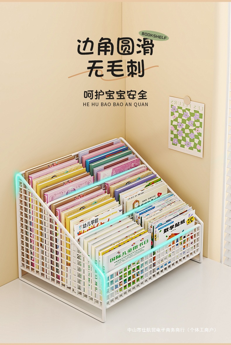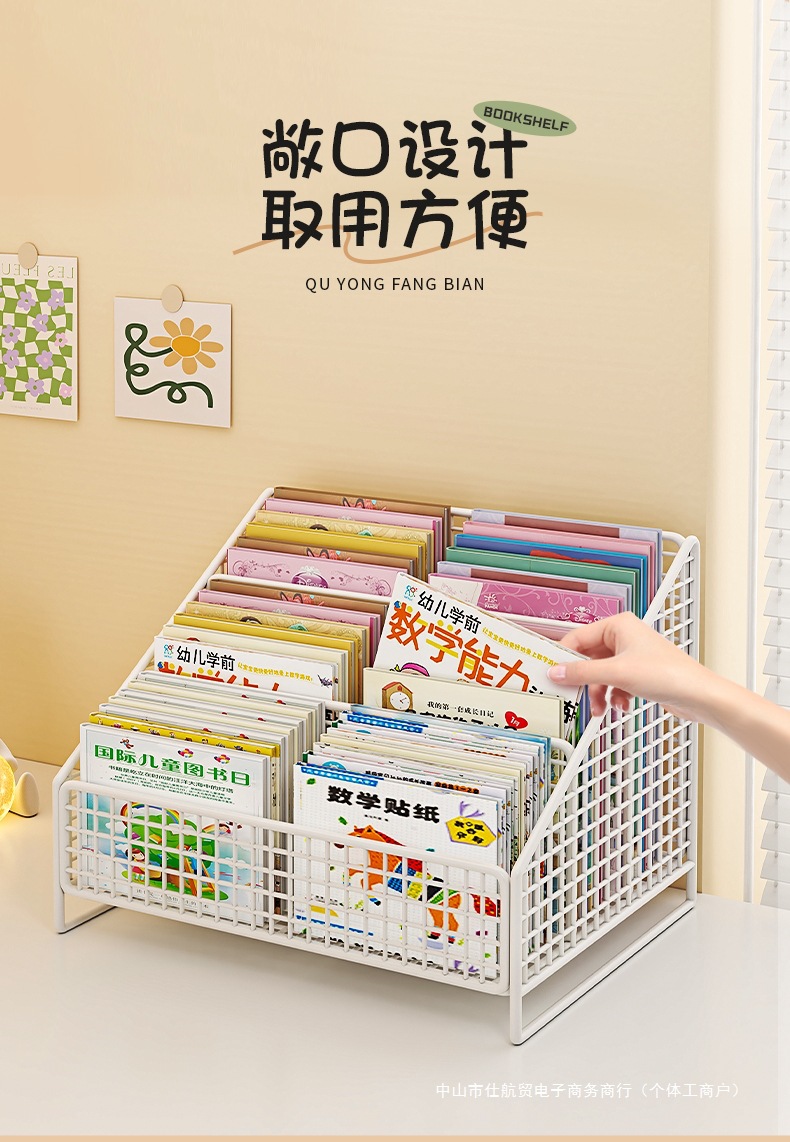 Книжный шкаф на столе, полка для детских картинок, прикроватная тумбочка, стеллаж для хранения в оконном проеме, интегрированный маленький ящик для хранения