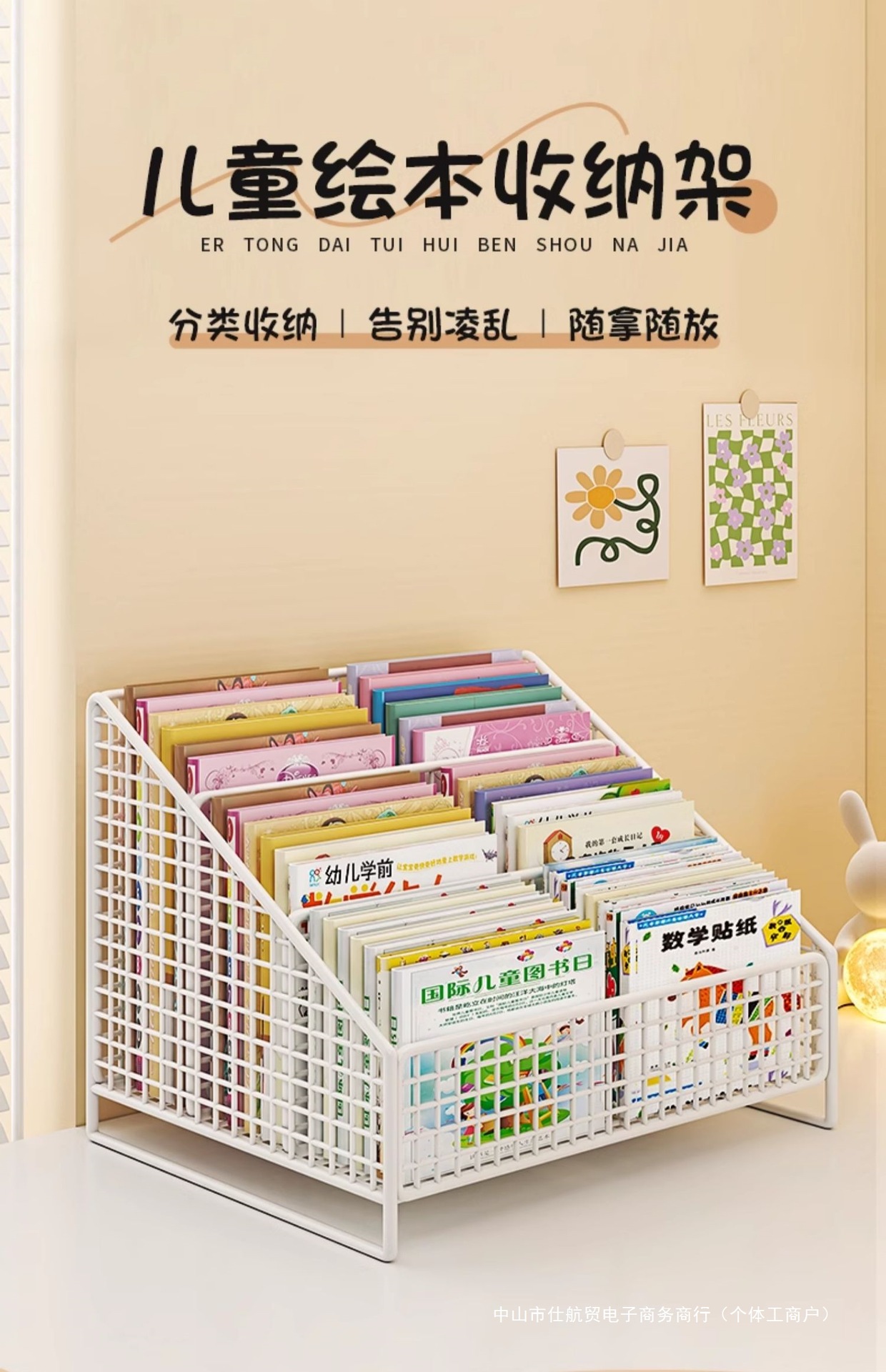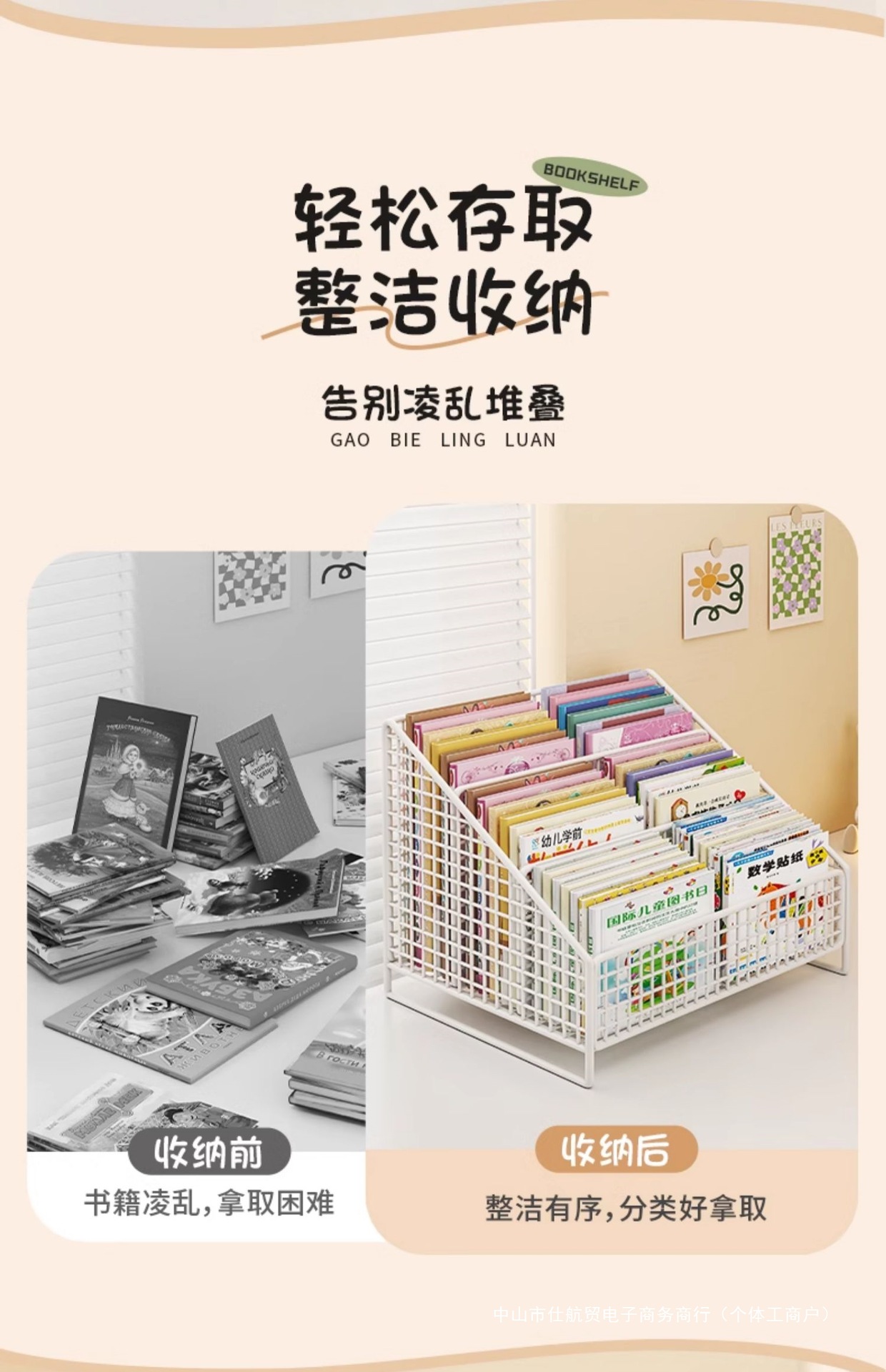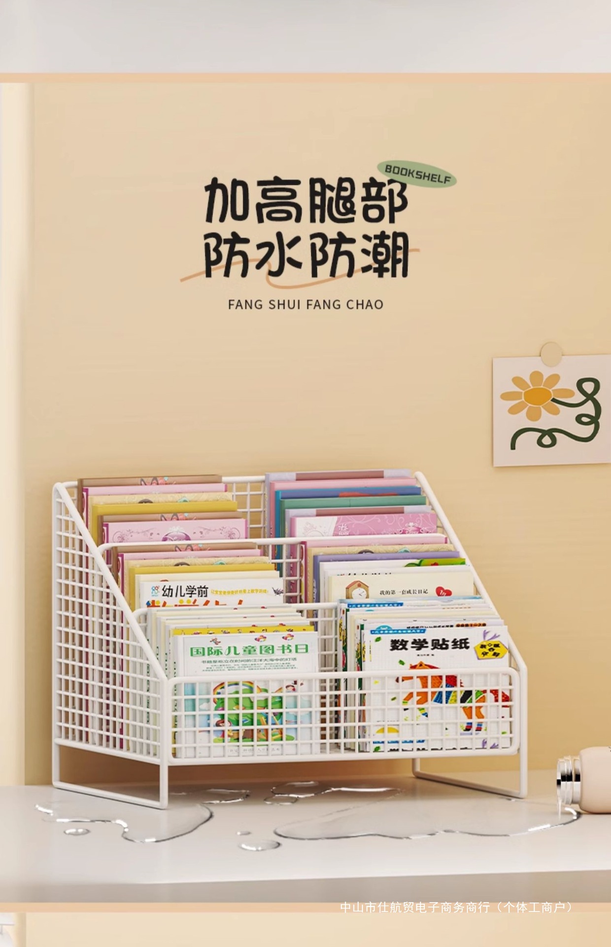 Книжный шкаф на столе, полка для детских картинок, прикроватная тумбочка, стеллаж для хранения в оконном проеме, интегрированный маленький ящик для хранения