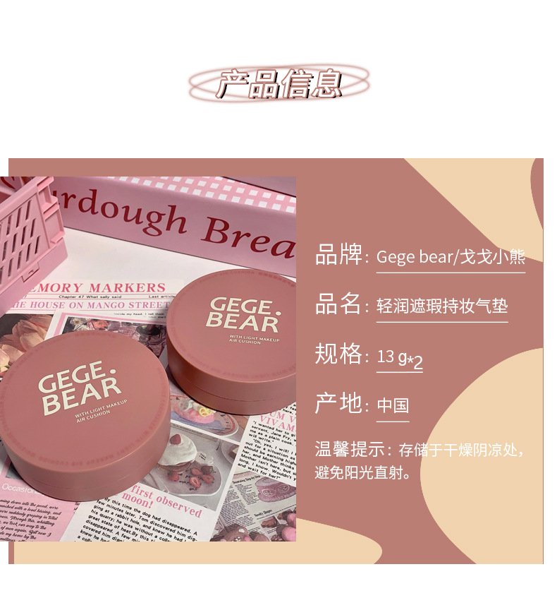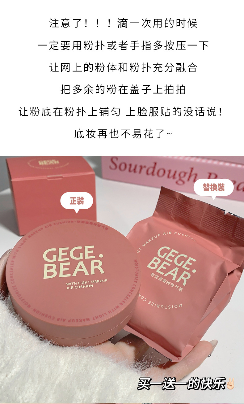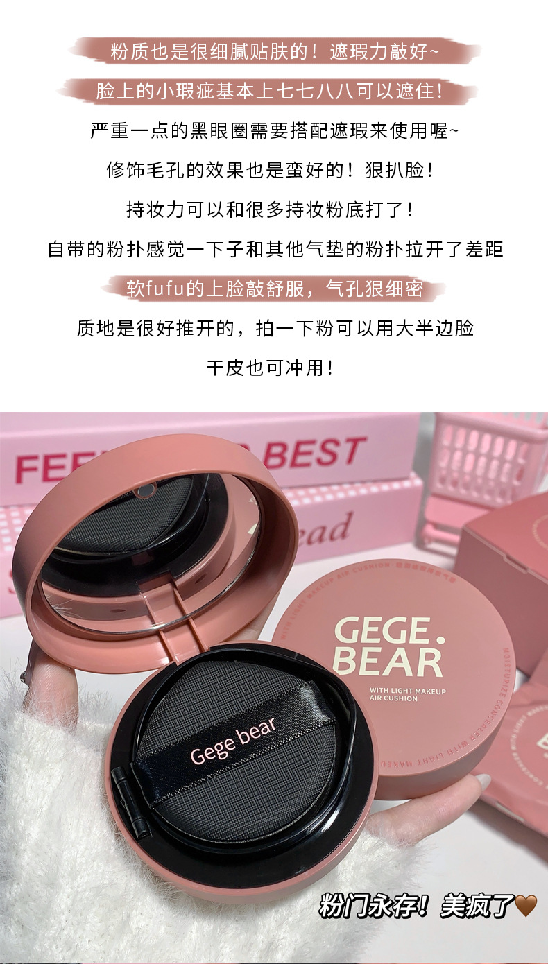 Крем-кушон Gegebear, легкий, увлажняющий, консилер, стойкий, матовый, контроль жира, естественная модификация цвета кожи, доступный для студентов