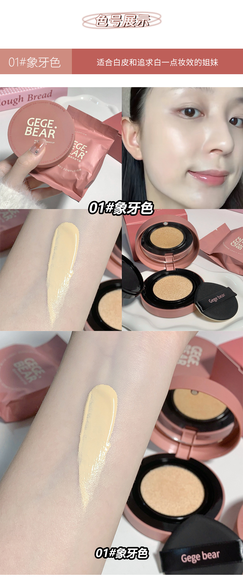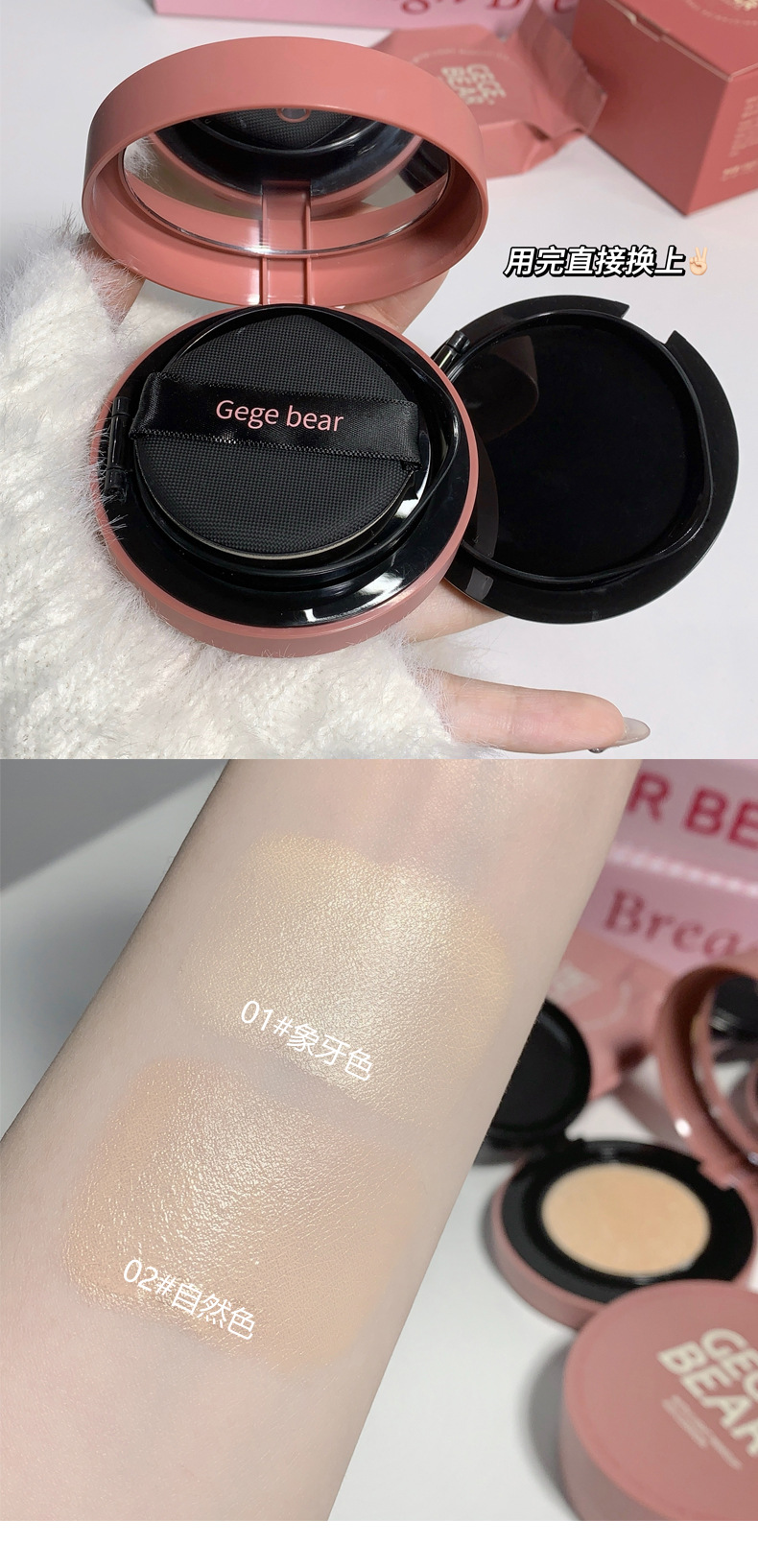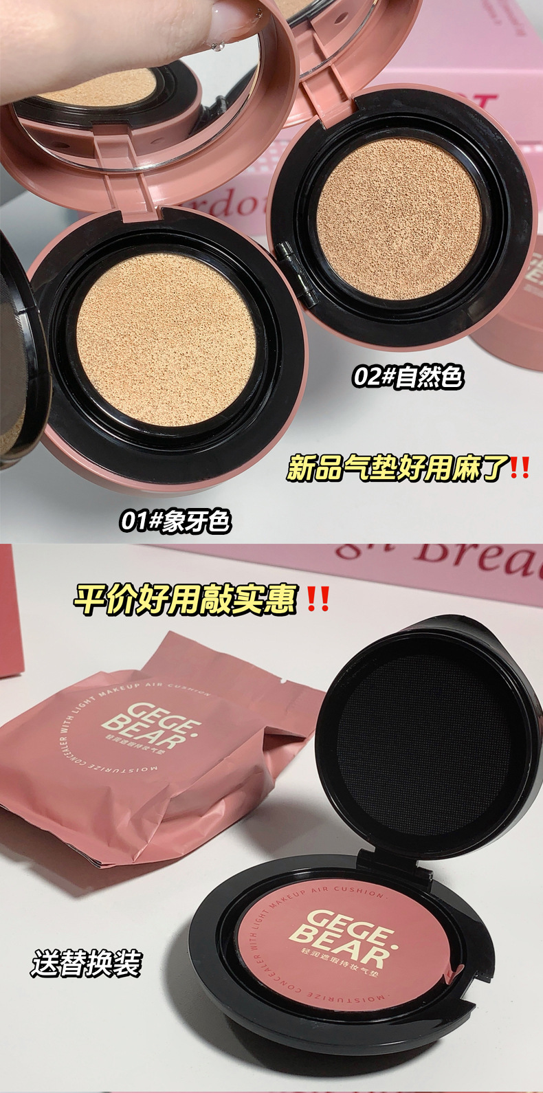 Крем-кушон Gegebear, легкий, увлажняющий, консилер, стойкий, матовый, контроль жира, естественная модификация цвета кожи, доступный для студентов