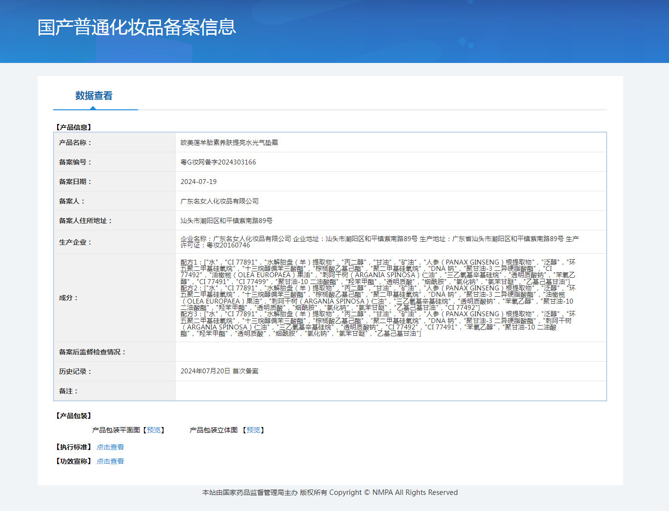 Номер сертификата регистрации несpecial косметики Guangdong g makeup network preparation number 2024303166
