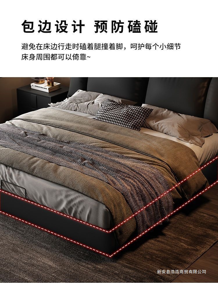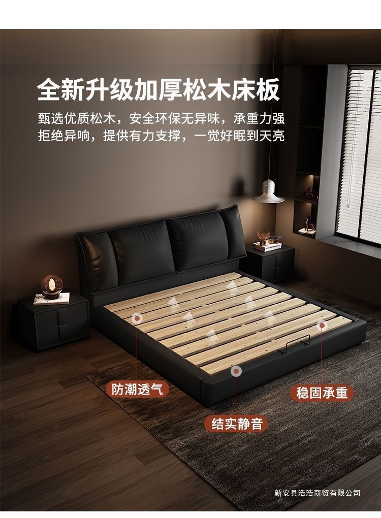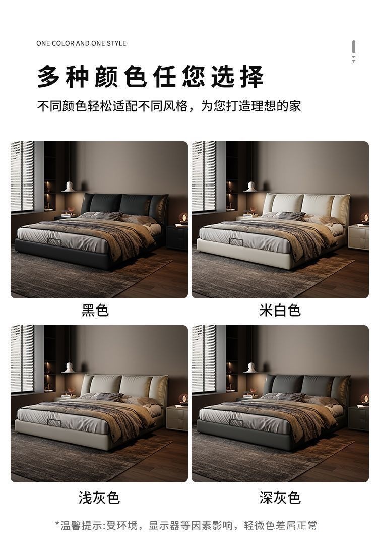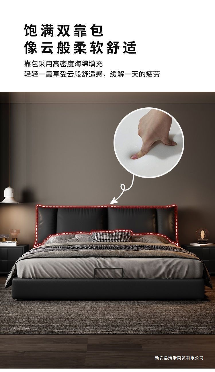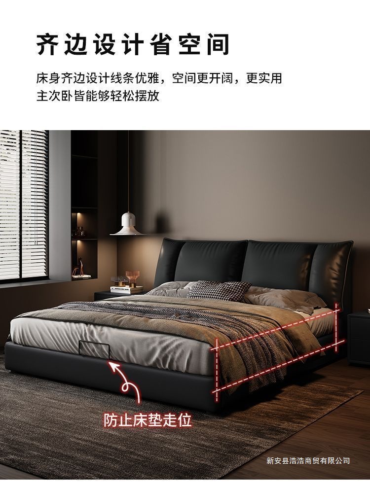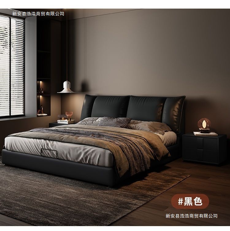 Минималистичная итальянская кожаная кровать, двуспальная, полный комплект, черная, для главной спальни, большая кровать, с небольшими ушками, легкая роскошь, новинка