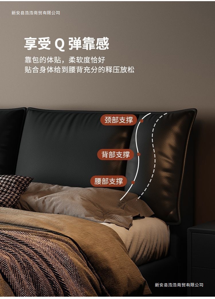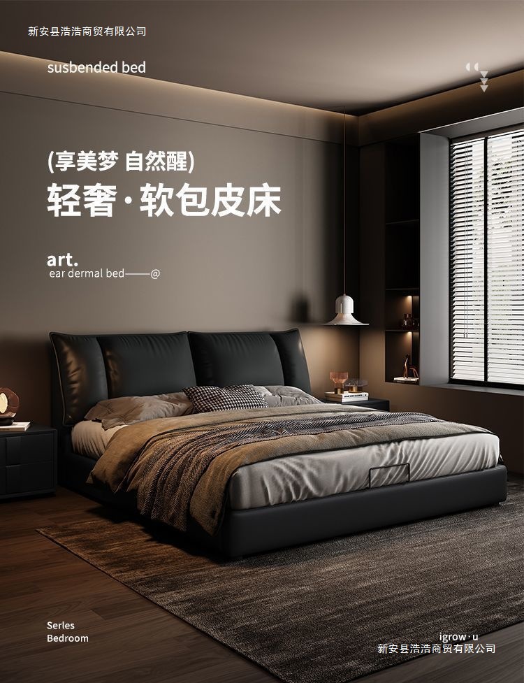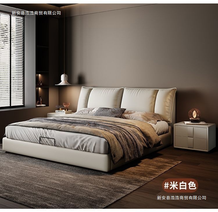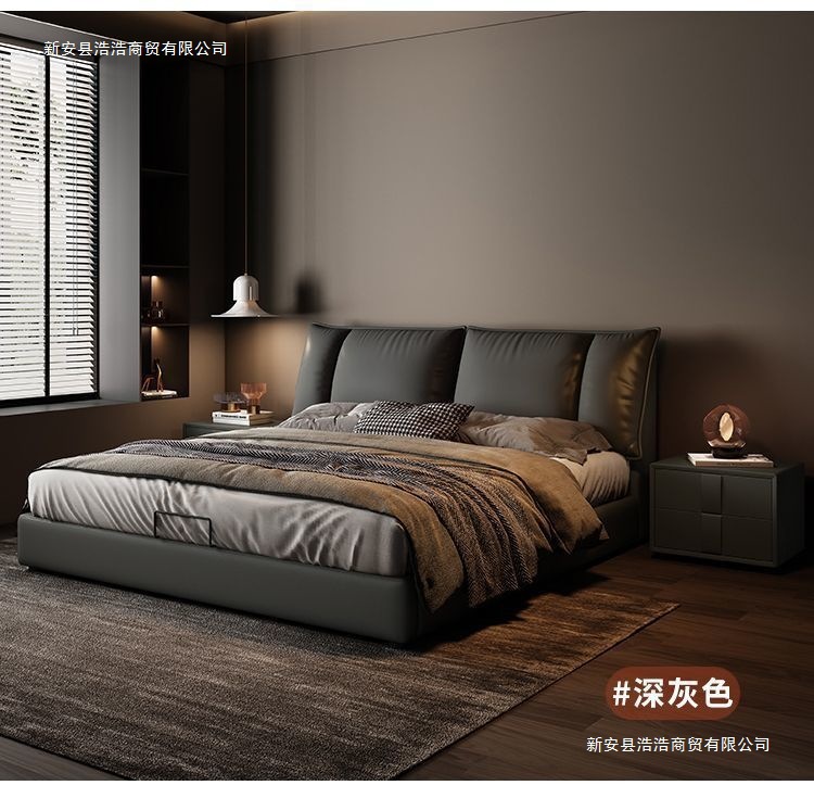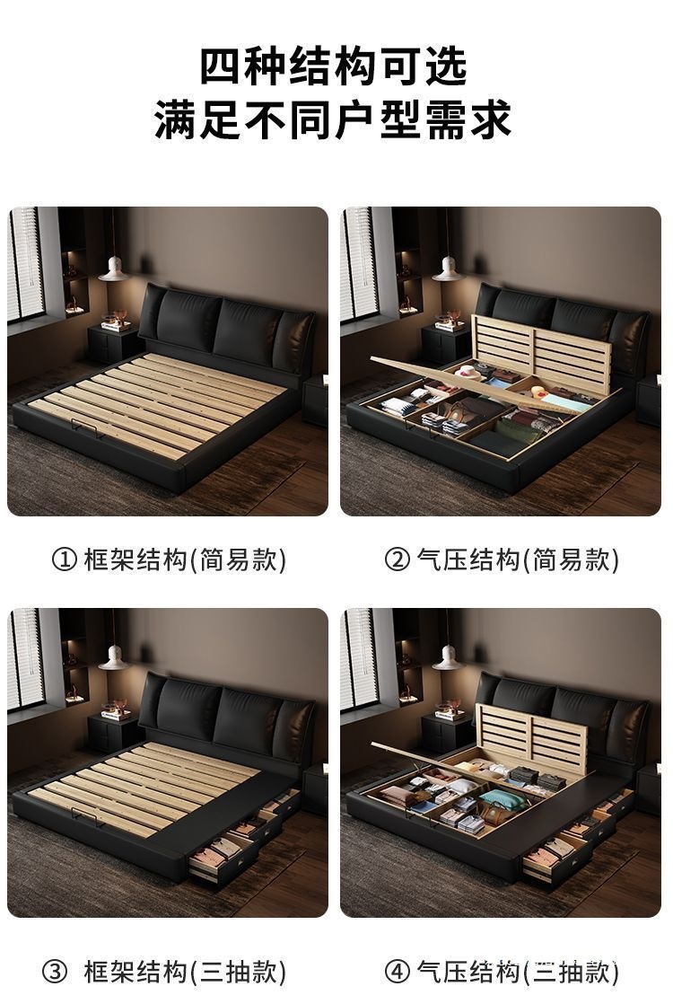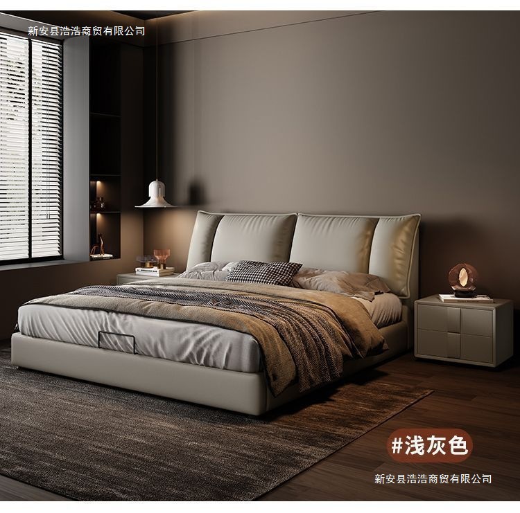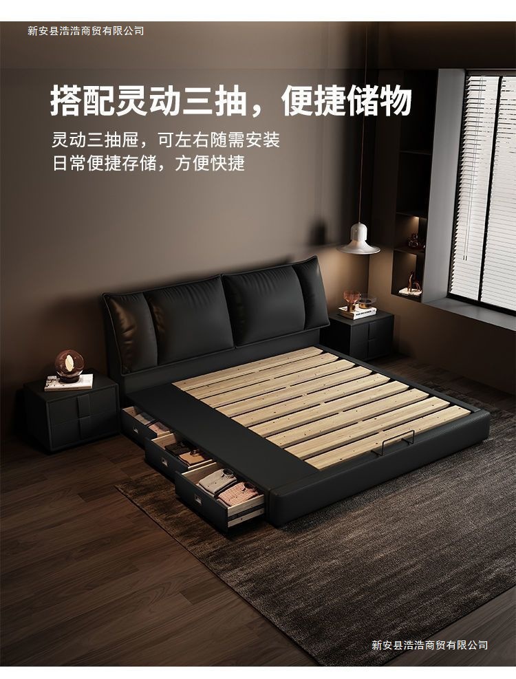 Минималистичная итальянская кожаная кровать, двуспальная, полный комплект, черная, для главной спальни, большая кровать, с небольшими ушками, легкая роскошь, новинка