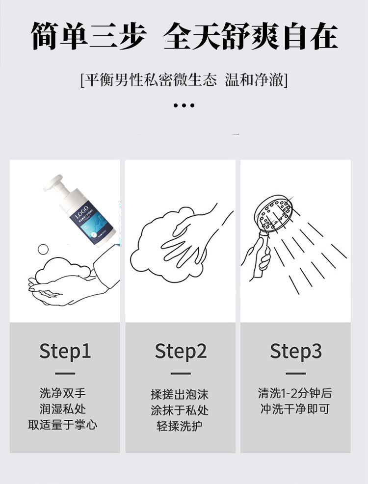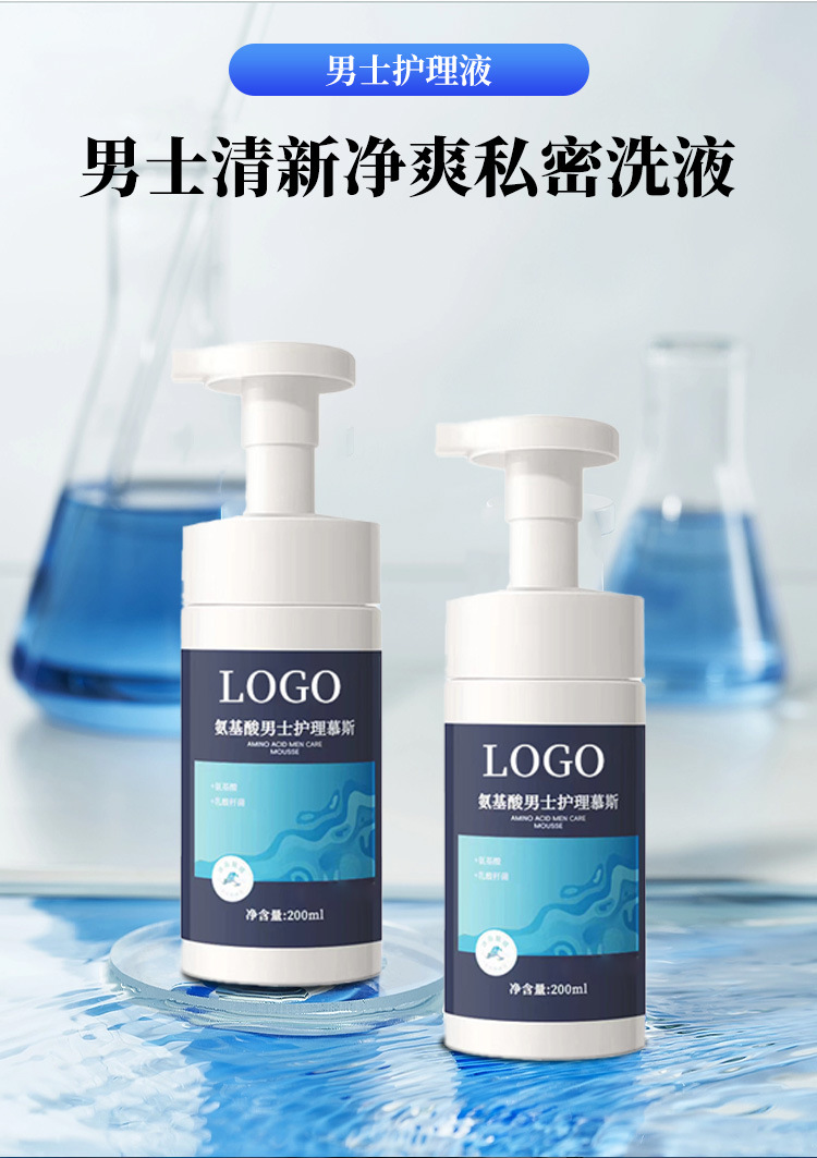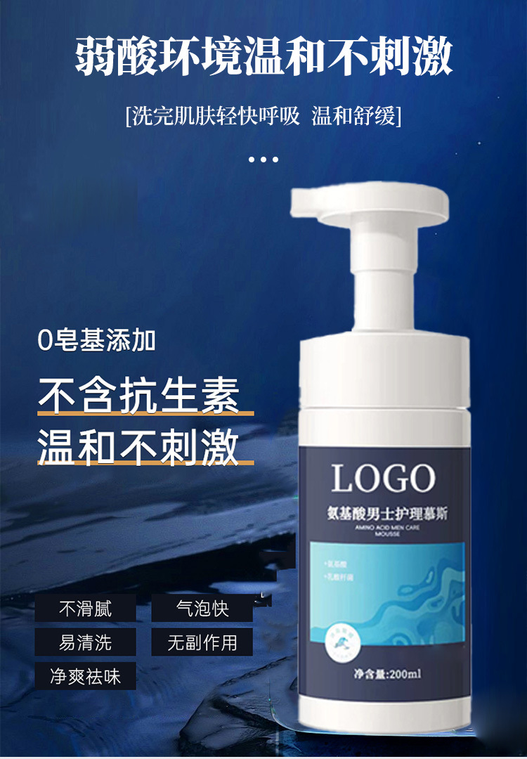 Мусс для ухода за интимными зонами для мужчин, аминокислоты, травяной лосьон, OEM, мягкое очищение, антибактериальная и дезодорирующая обработка
