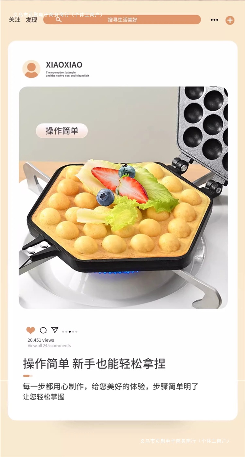 ![]() | [enlarged and thickened double-sided heating] hong kong style egg waffle mold [comes with oil brush + steel needle] | ¥43.74 / ≈ 532 ₽ | 2000 | 6023712967482 | |