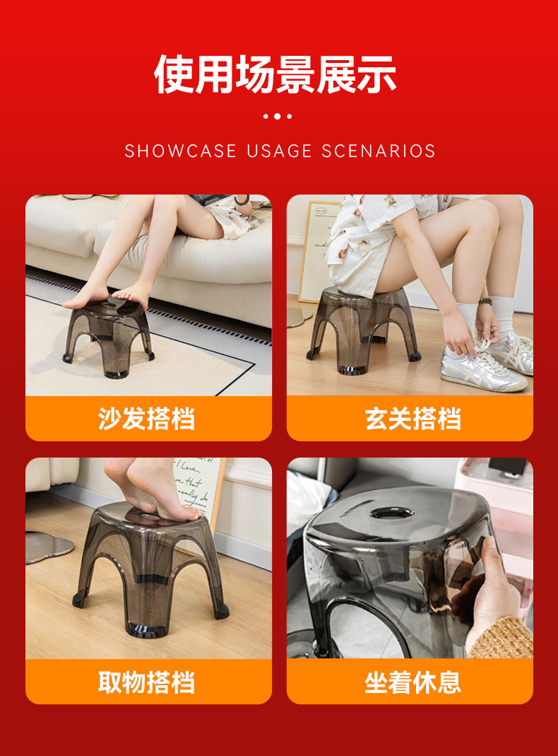 Круглый табурет, маленький стул, пластиковая прозрачная скамейка, утолщенный маленький табурет, низкий табурет для дома, для кофейного столика в гостиной