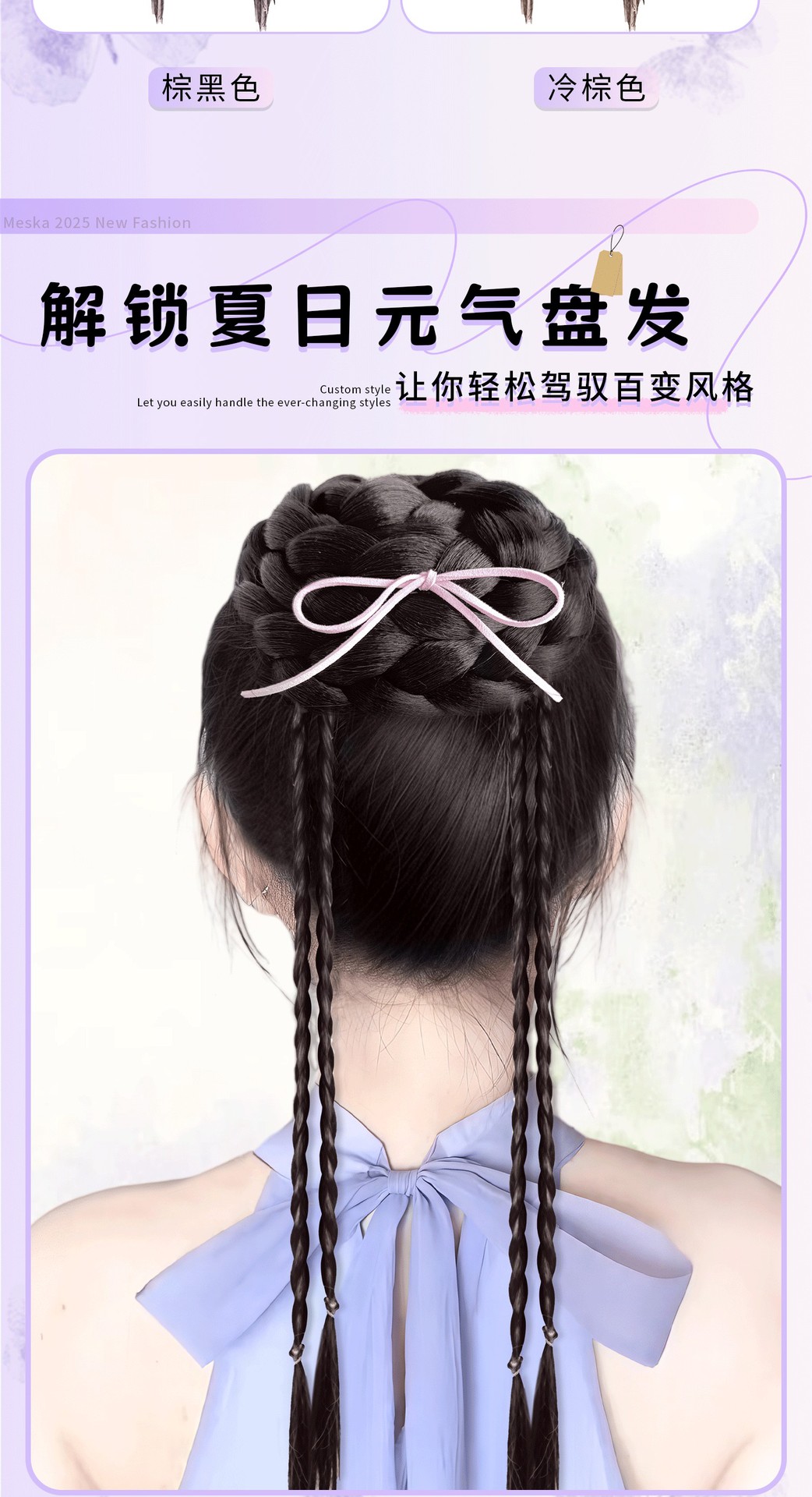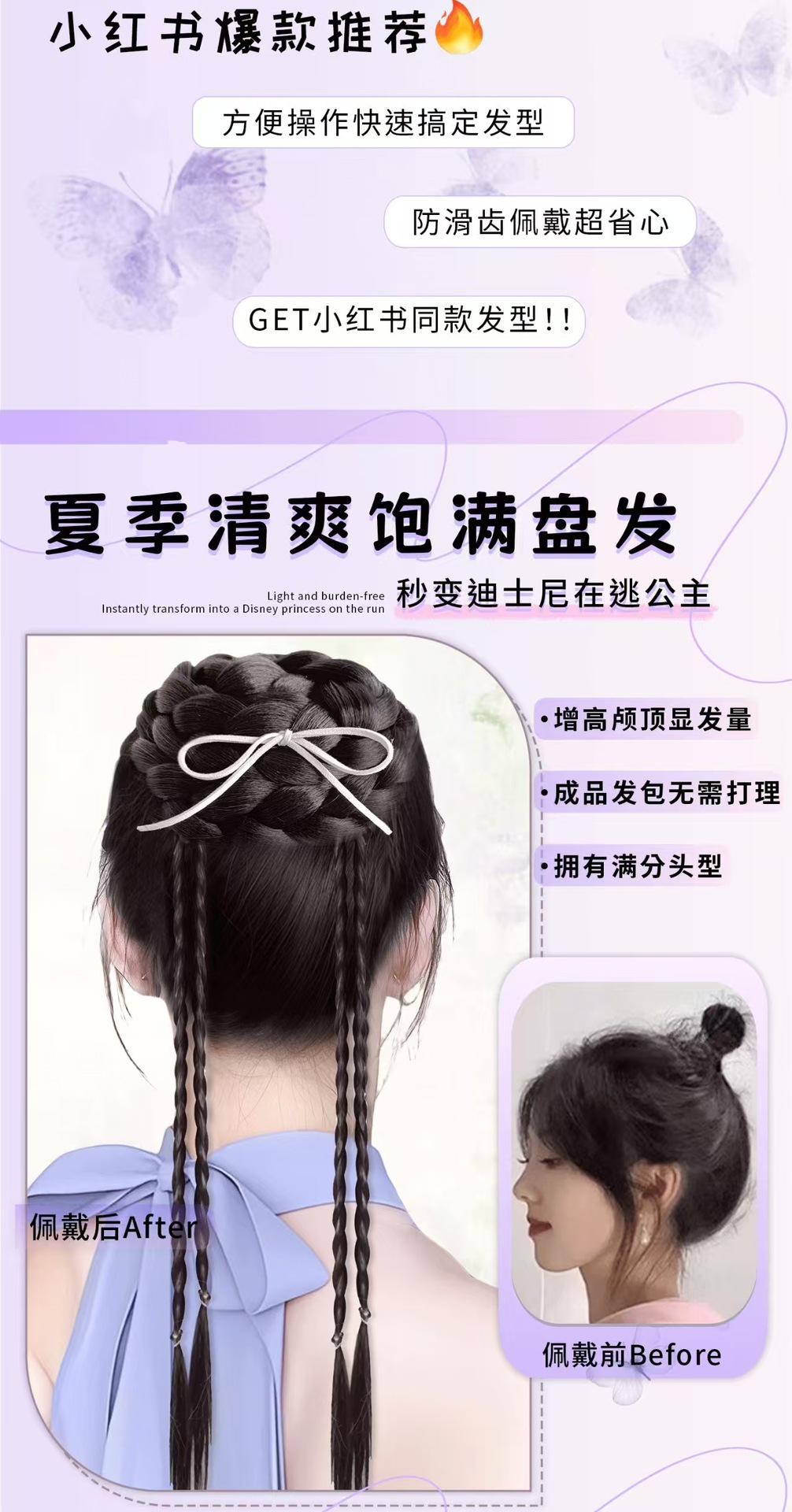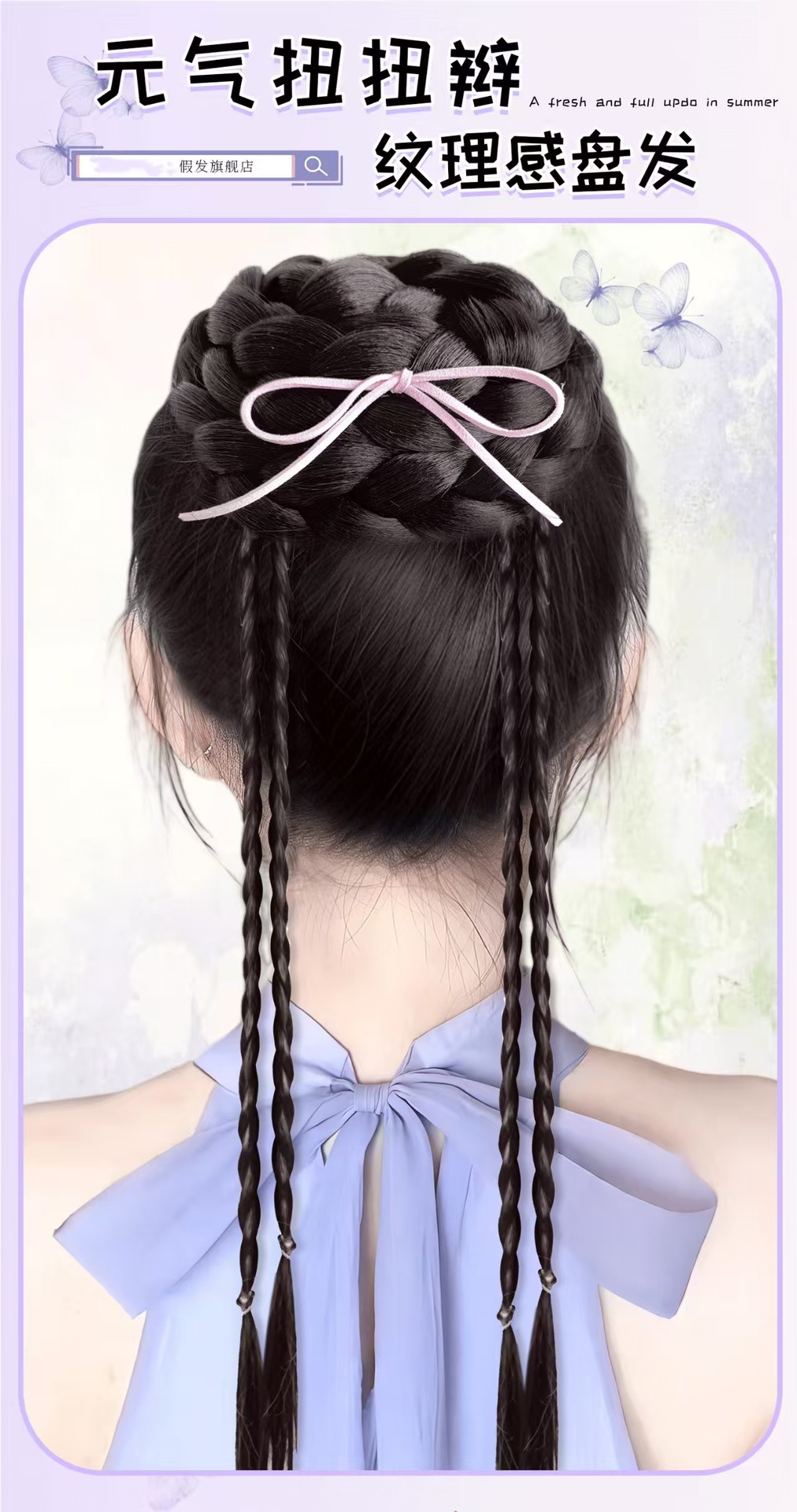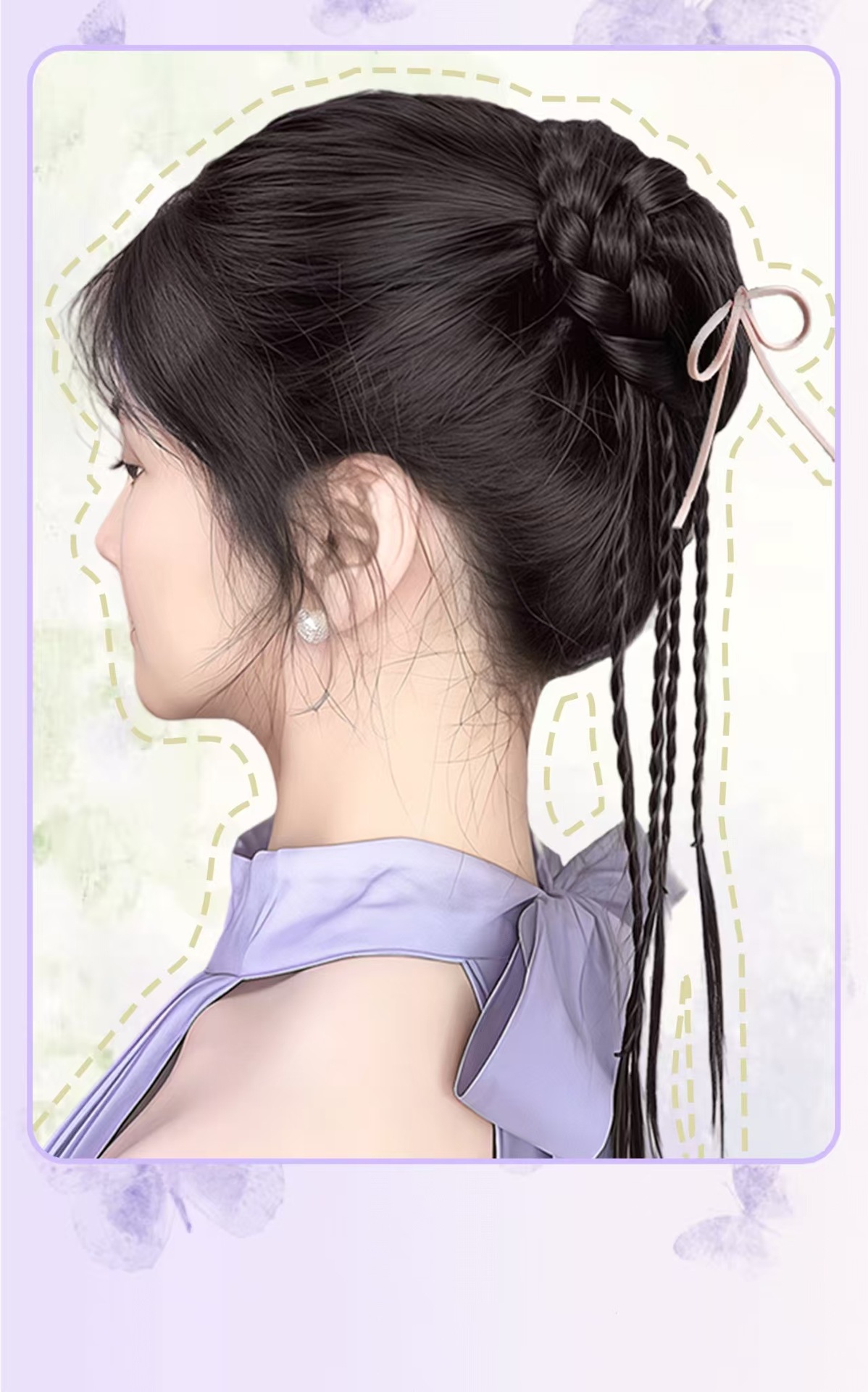 Высокий пучок для женщин с высокой короной, текстурированный стиль пучка, реалистичный пучок, новый китайский стиль с косами