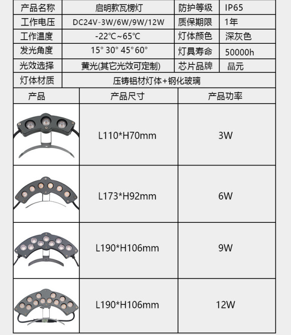 Мощность источника света 3w 6w 9w 12w