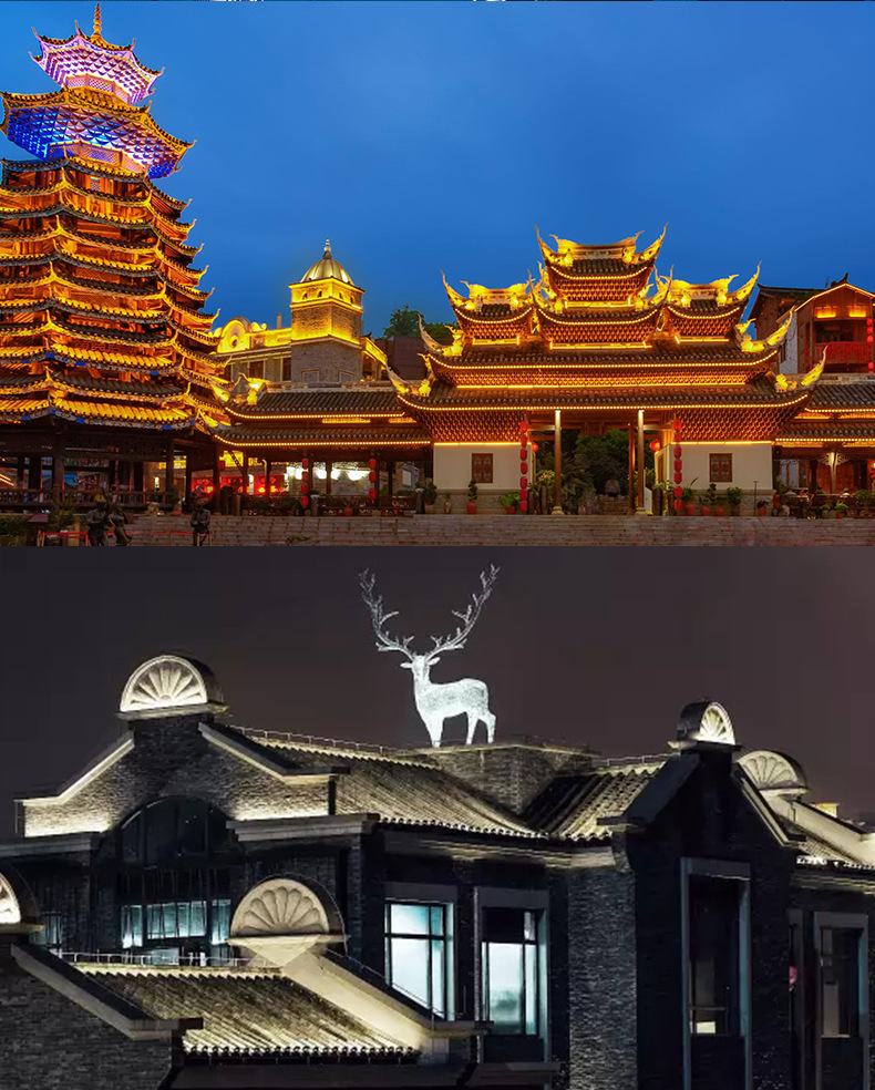 Светодиодный волнистый свет для улицы, крыша древнего здания, водонепроницаемый, полумесяц, светильник для храма, павильон, черепичная лампа