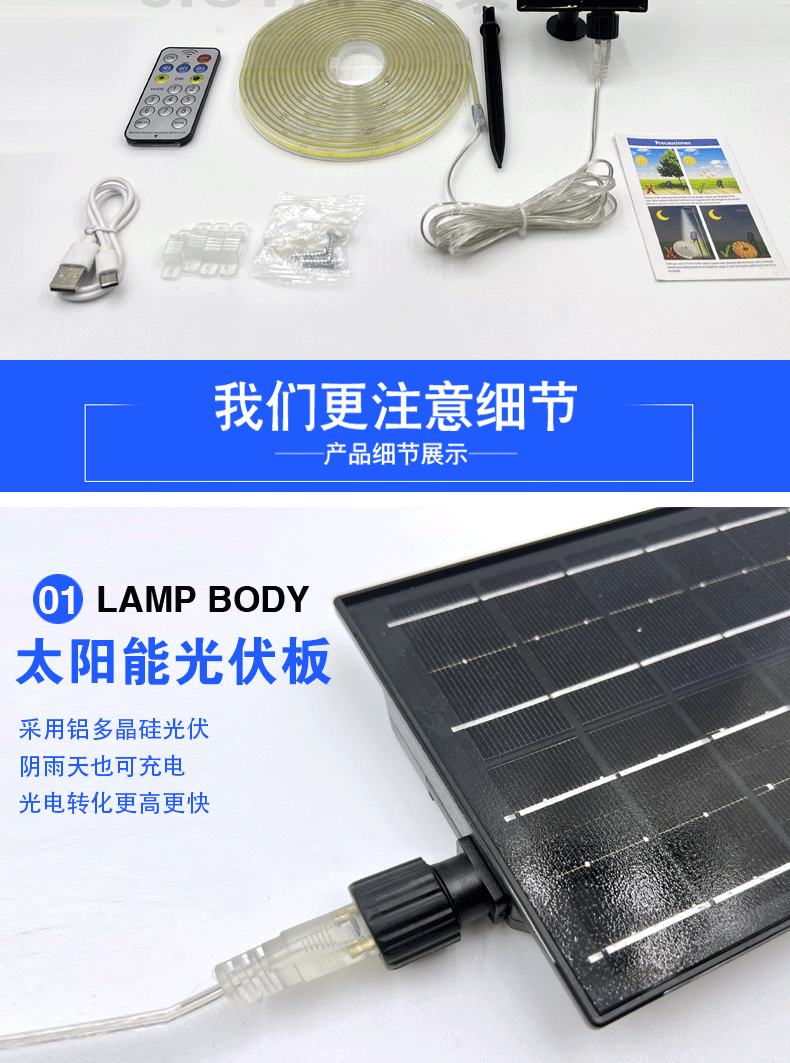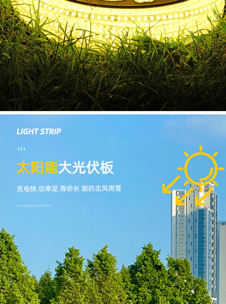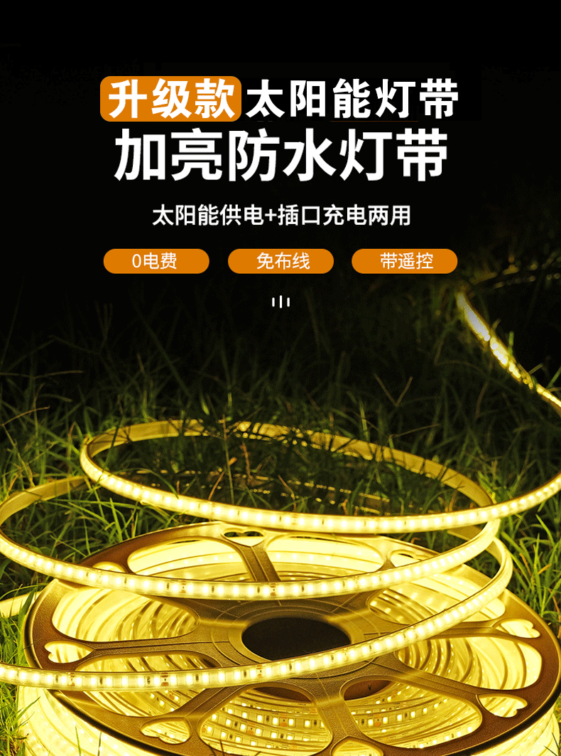 Новая солнечная светодиодная лента для улицы, водонепроницаемая, атмосфера двора, COB световая строка, супер яркая, стиль украшения для кемпинга