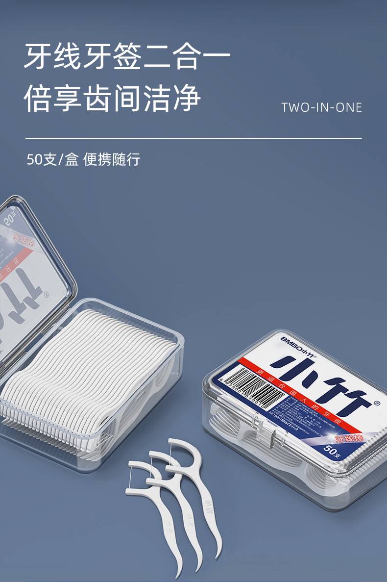 Маленькая бамбуковая зубная нить, 50 штук в коробке, гладкая одноразовая зубная нить, портативная коробка, готовая к доставке от фабрики