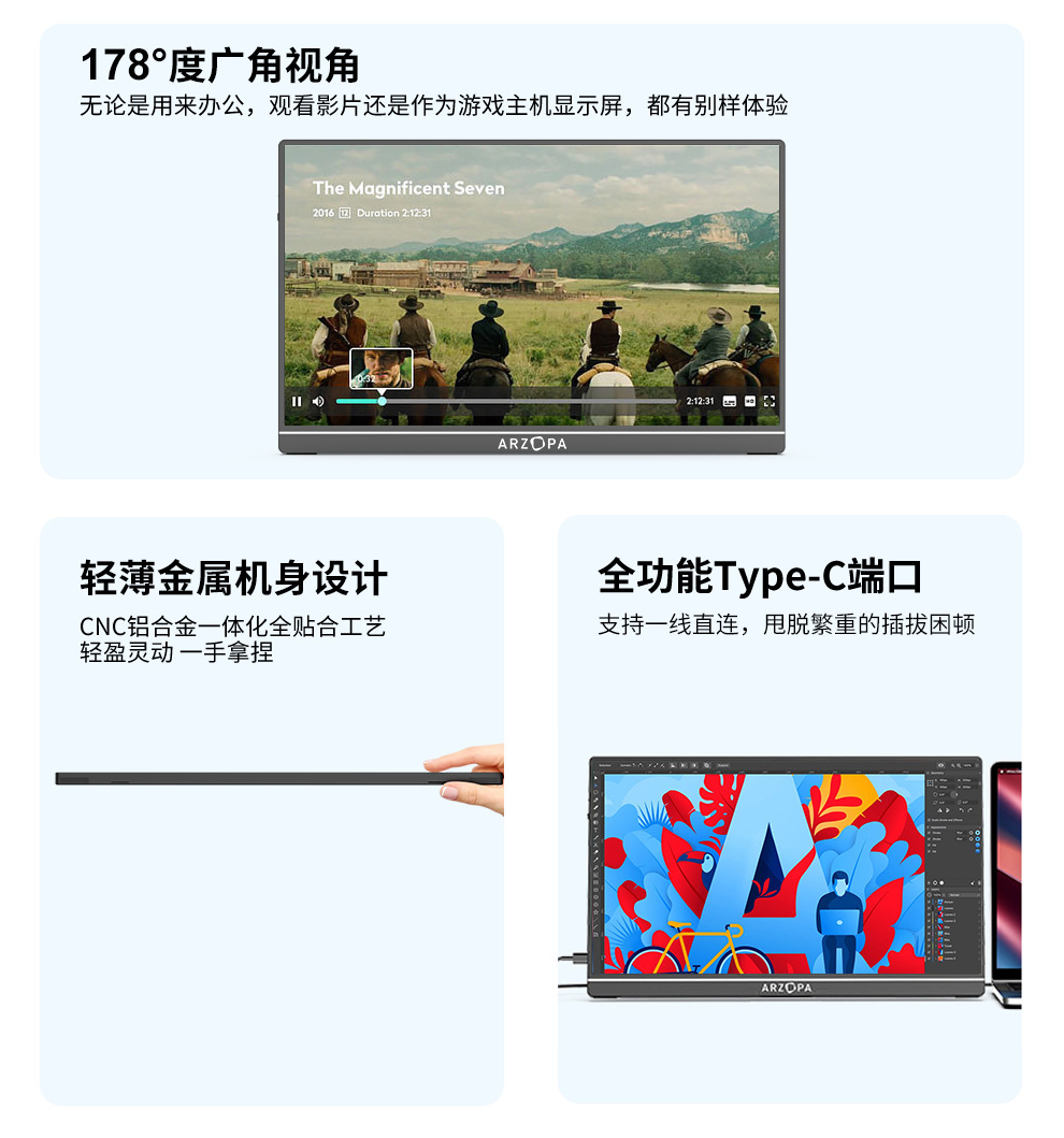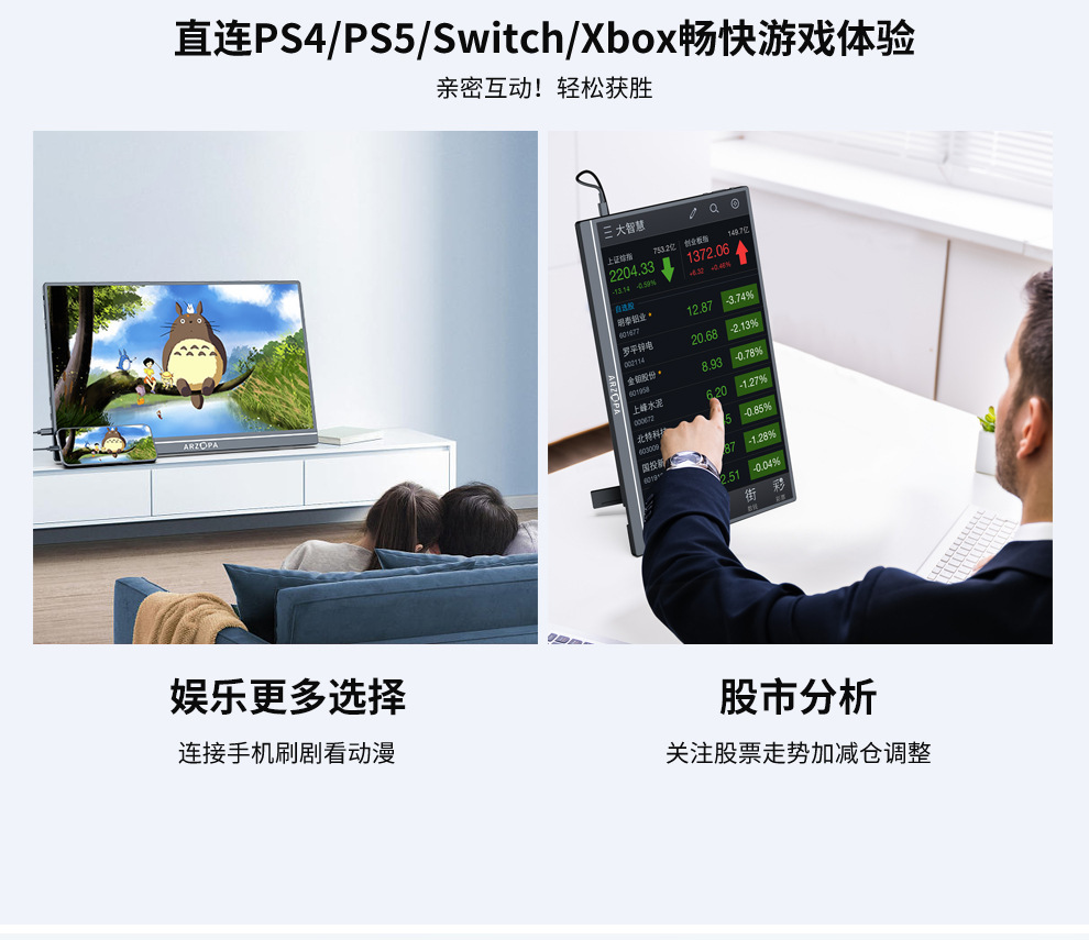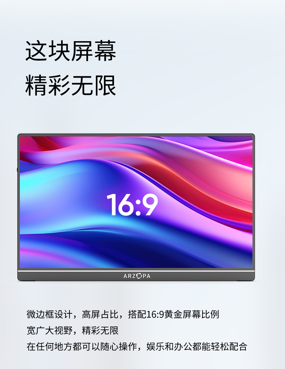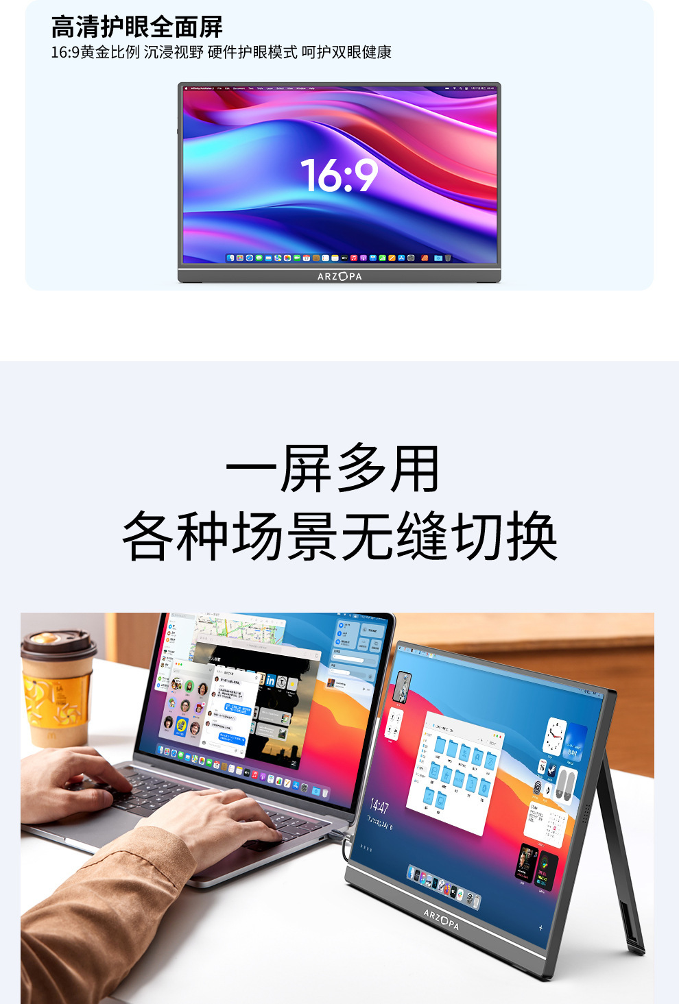 Arzopa 15.6 дюймов Портативный дисплей Компьютер Ноутбук Вторичный экран Мобильный телефон Switch PS4/5 Расширенный экран