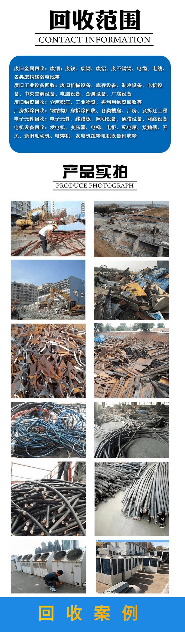 三、废旧废钢回收:电动机,发电机组、废旧变压器,配电柜,中央空调、机床、锅炉等废旧产品。