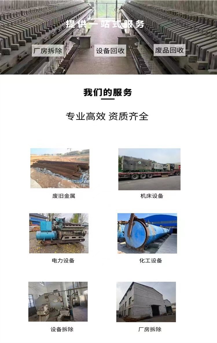 三、废旧废钢回收:电动机,发电机组、废旧变压器,配电柜,中央空调、机床、锅炉等废旧产品。