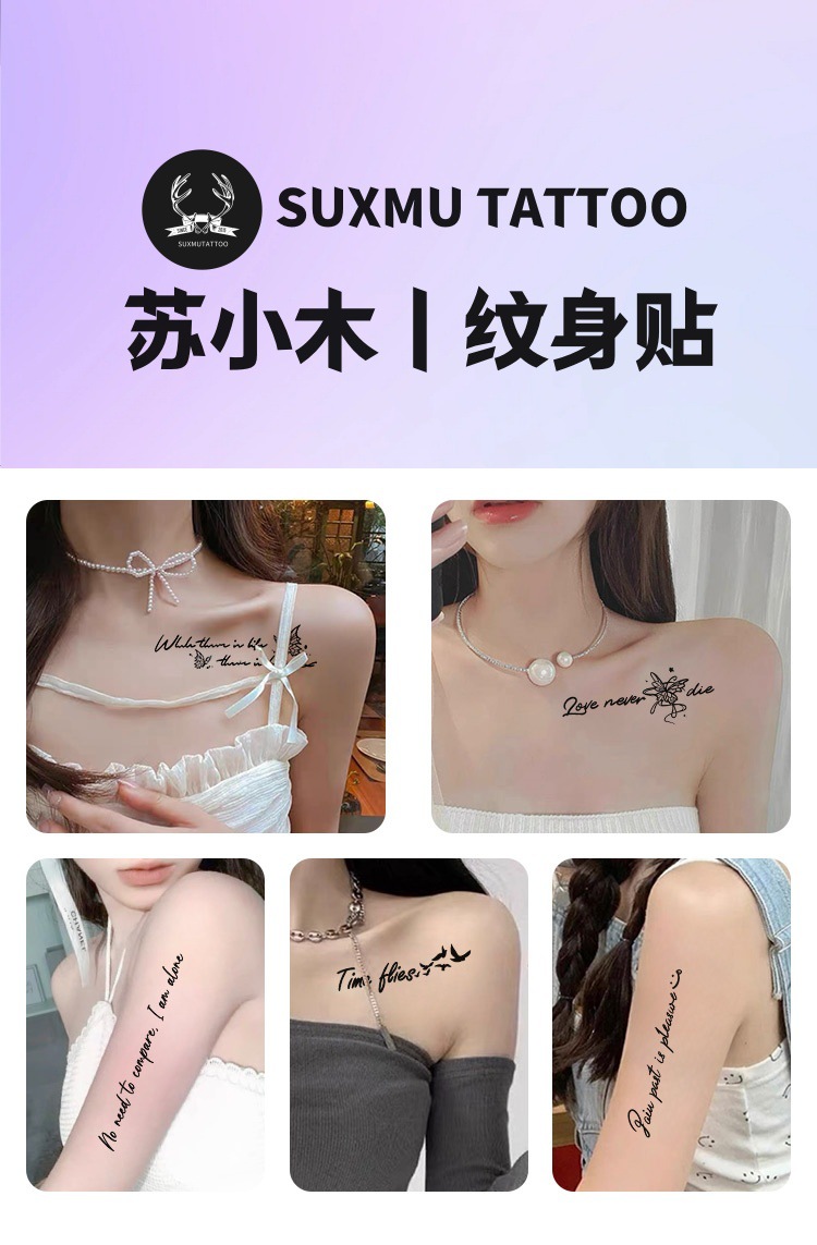 Тату наклейки с английским алфавитом для женского ключицы и мужские водостойкие и долговечные травяные наклейки полупрозрачные