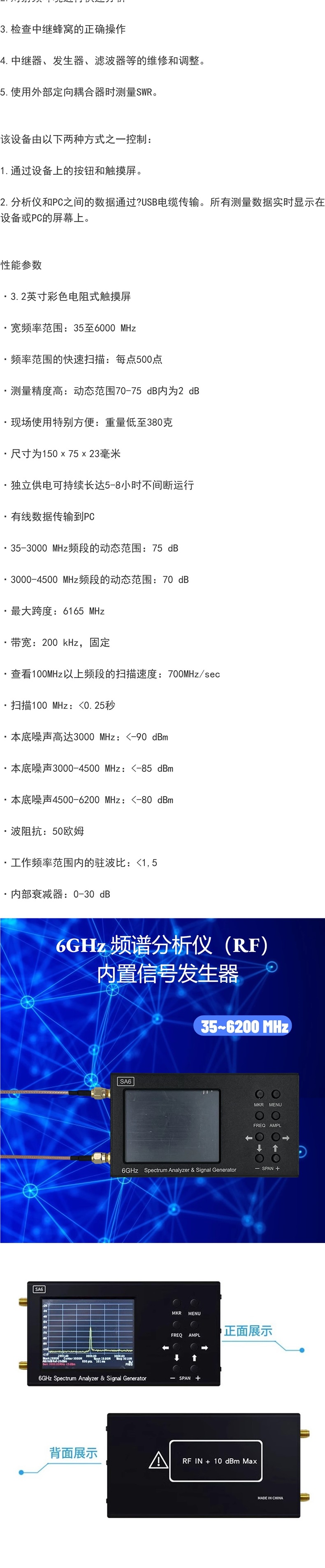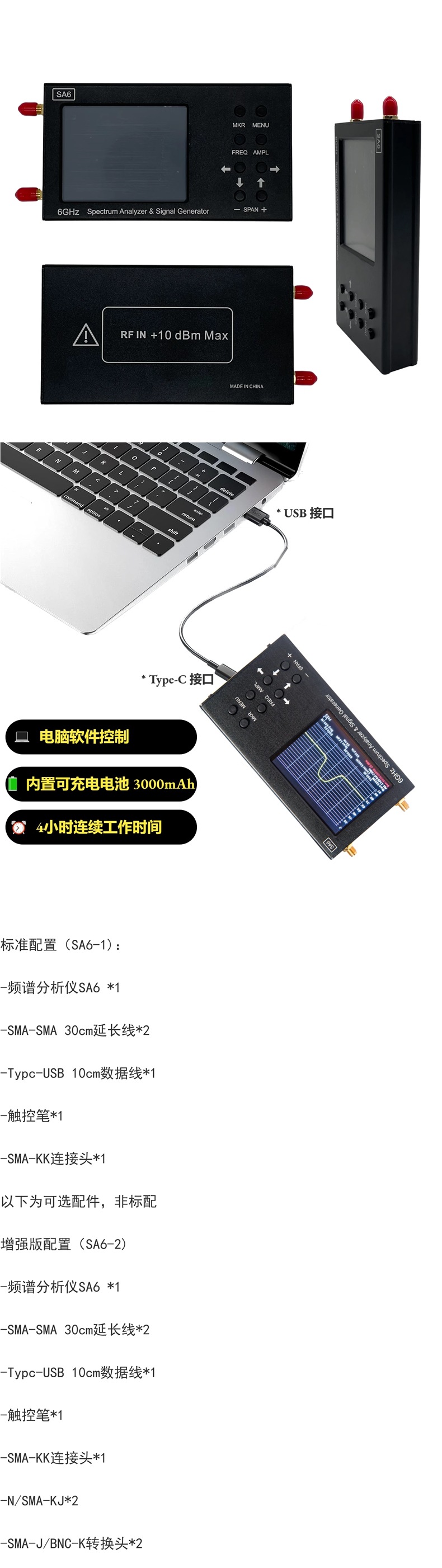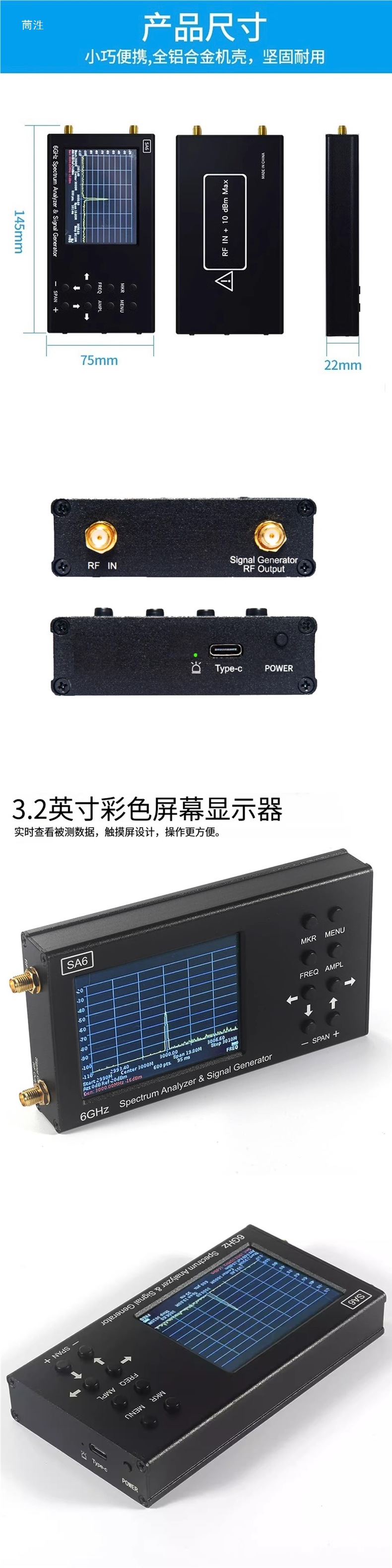 Спектроанализатор Sa6 35-6200 МГц, портативный беспроводной тестер сигнала, Wi-Fi, Bluetooth, базовая станция