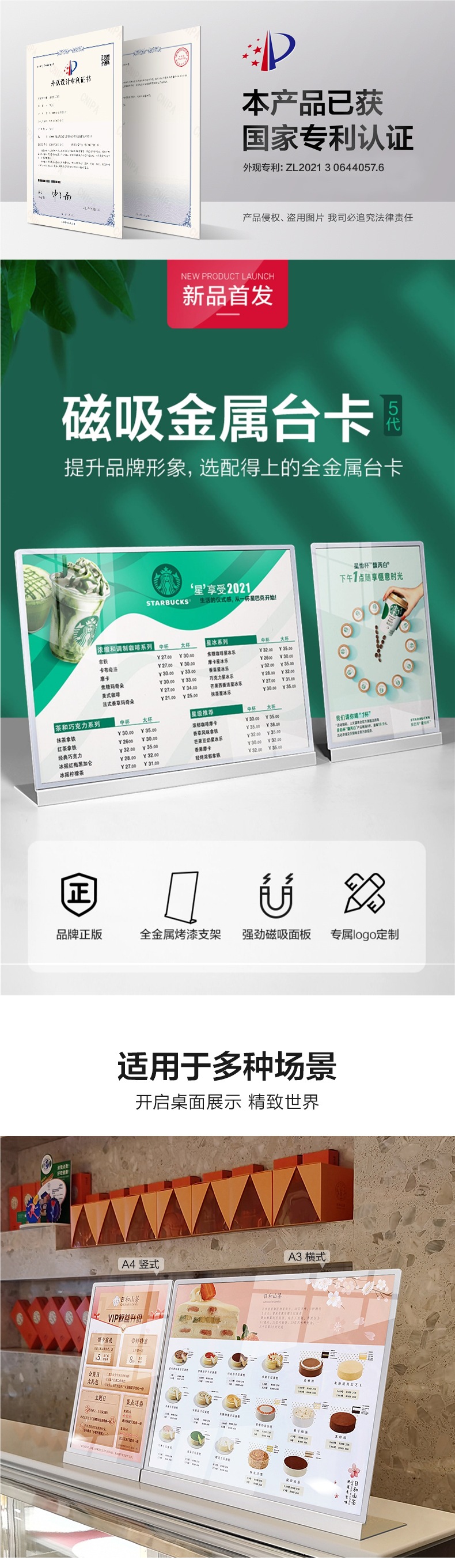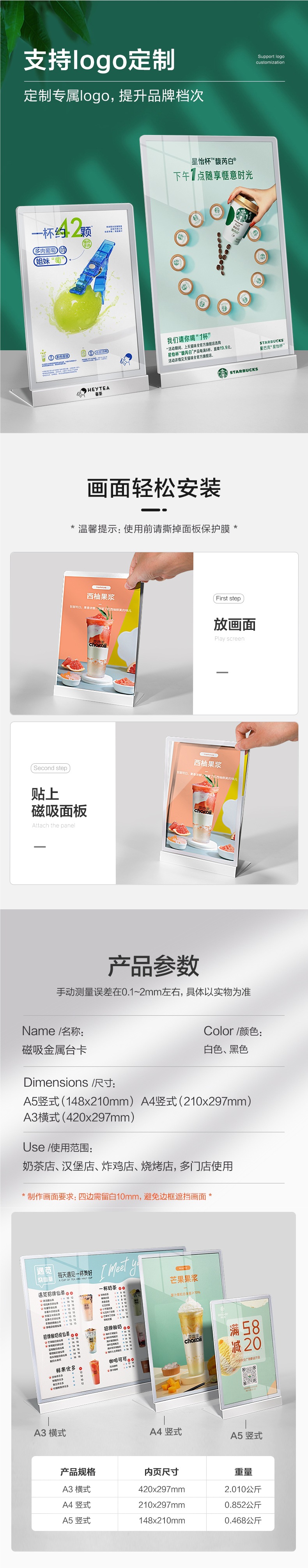 A4 магнитная металлическая карточка, меню для магазина молочного чая, дизайн и производство карточки заказа из нержавеющей стали A3