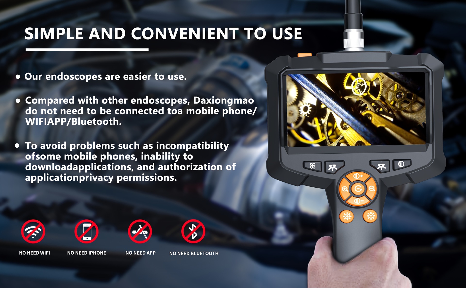 2025 Новый кросс-браундер эндоскопическая камера 16,5 футов с подсветкой 4,3/2,4