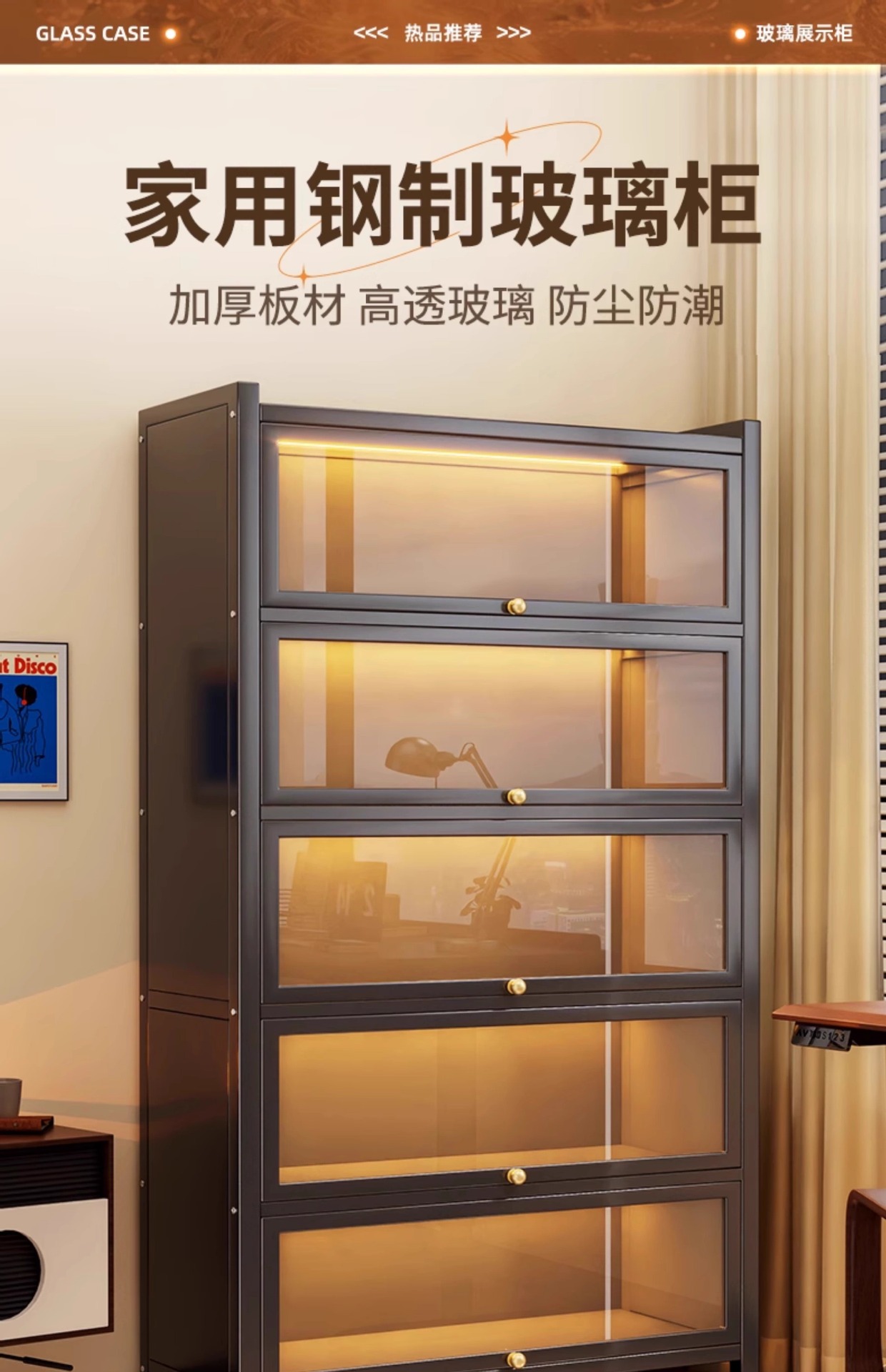 Стальной книжный шкаф с стеклянной дверцей напольный пылезащитный шкаф для хранения