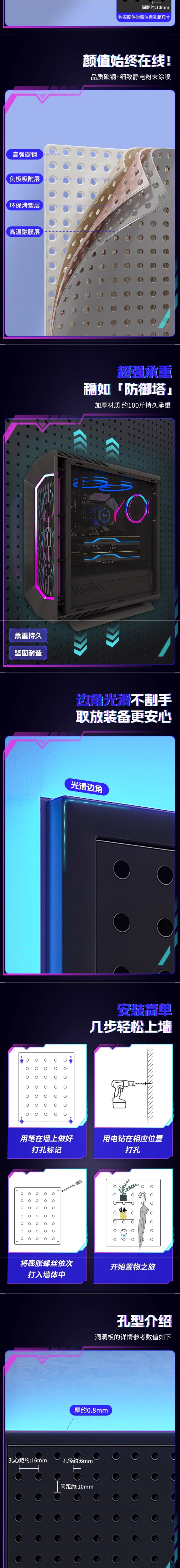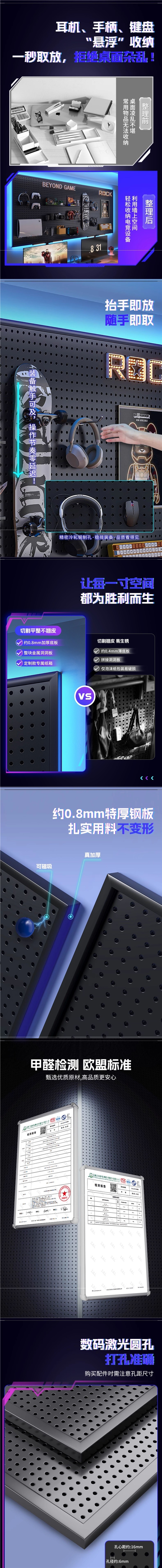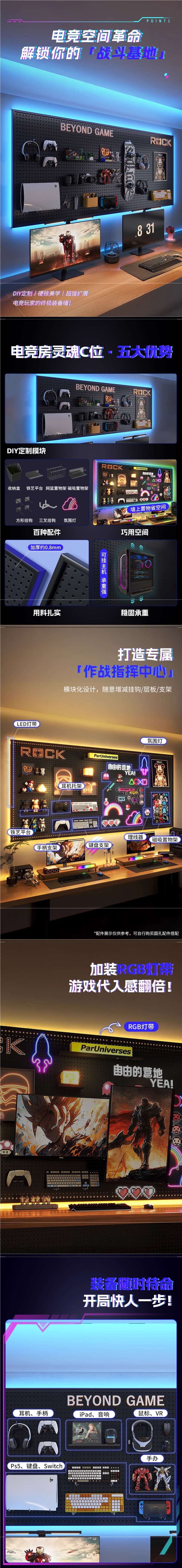 Перфорированная панель для киберспортивной комнаты, черный настенный стеллаж для хранения, настенная панель для компьютера