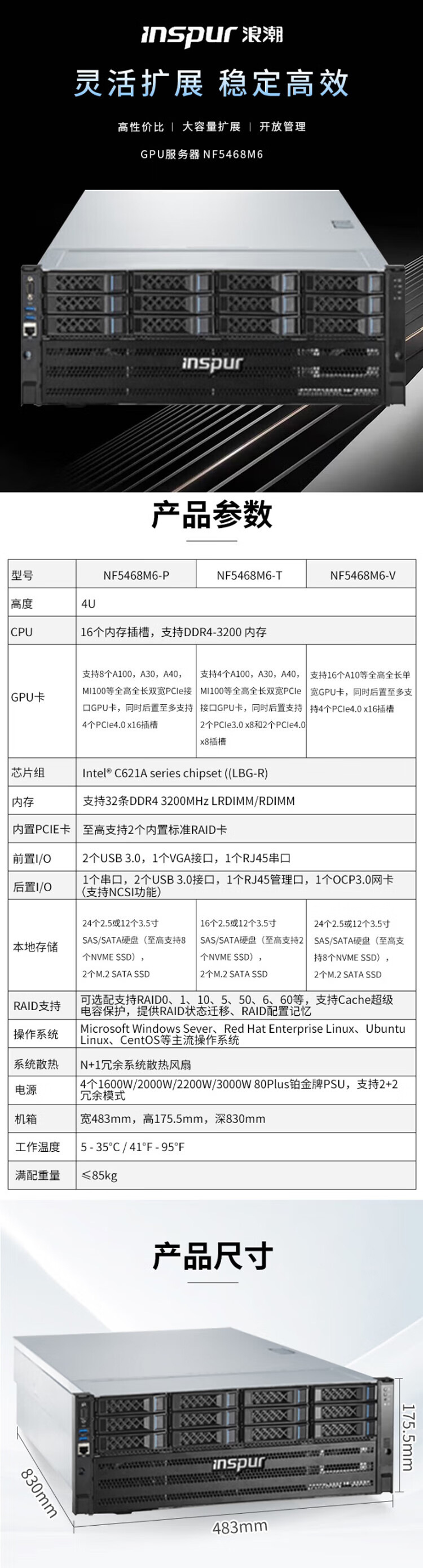 Подходит для сервера Inspur Nf5468M6, хост, малый AI, виртуализация, графический сервер
