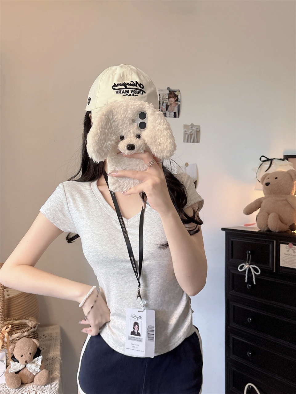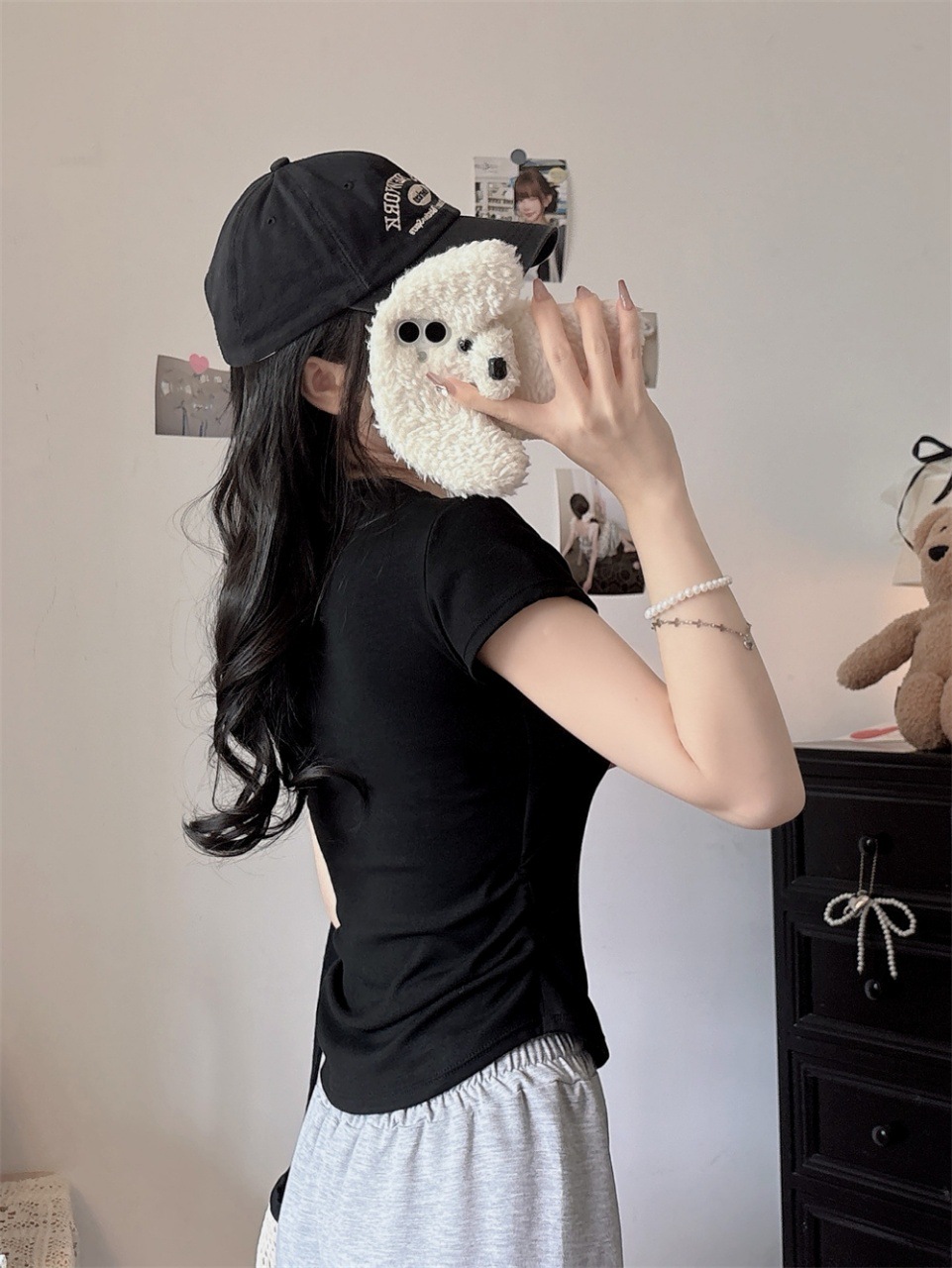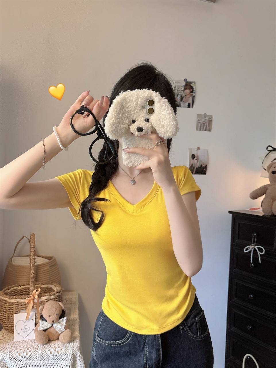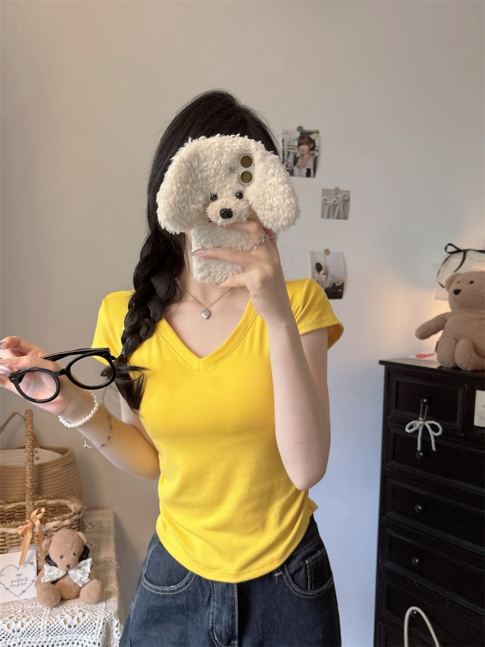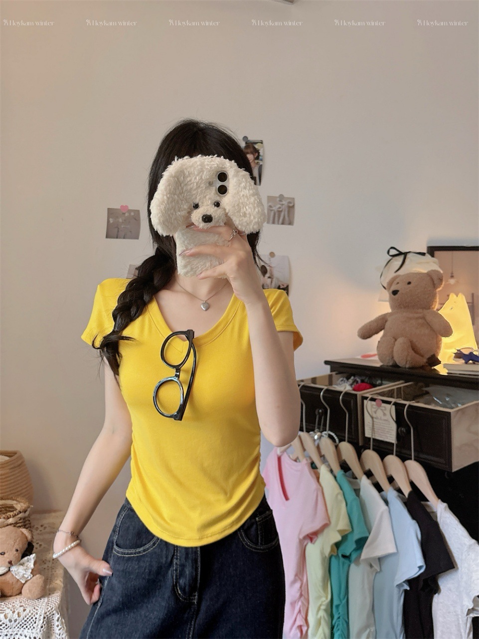 5125 # Чистое желание, V-образный вырез, правое плечо, короткий рукав, футболка для женщин, летний утягивающий дизайн, рюши на талии