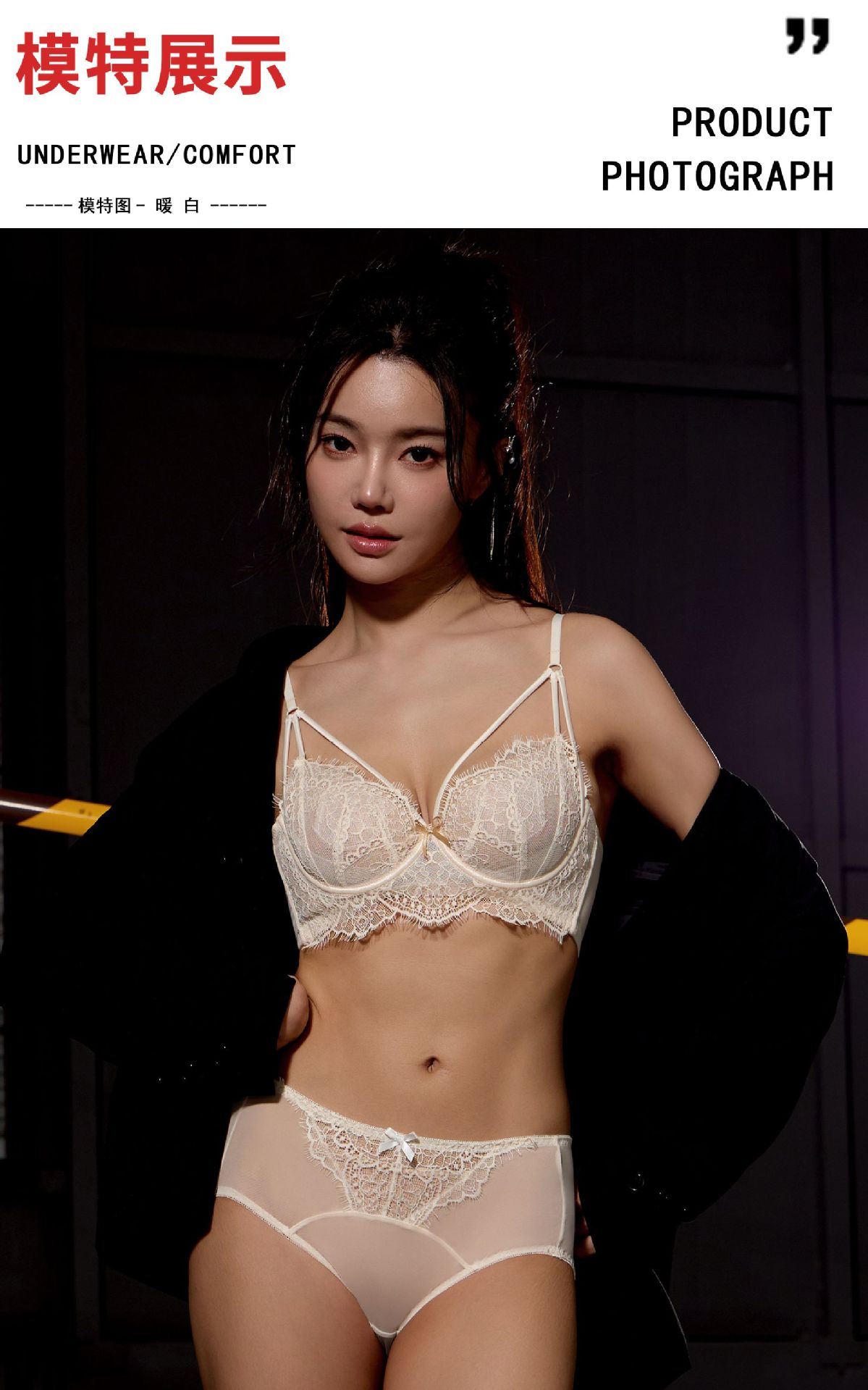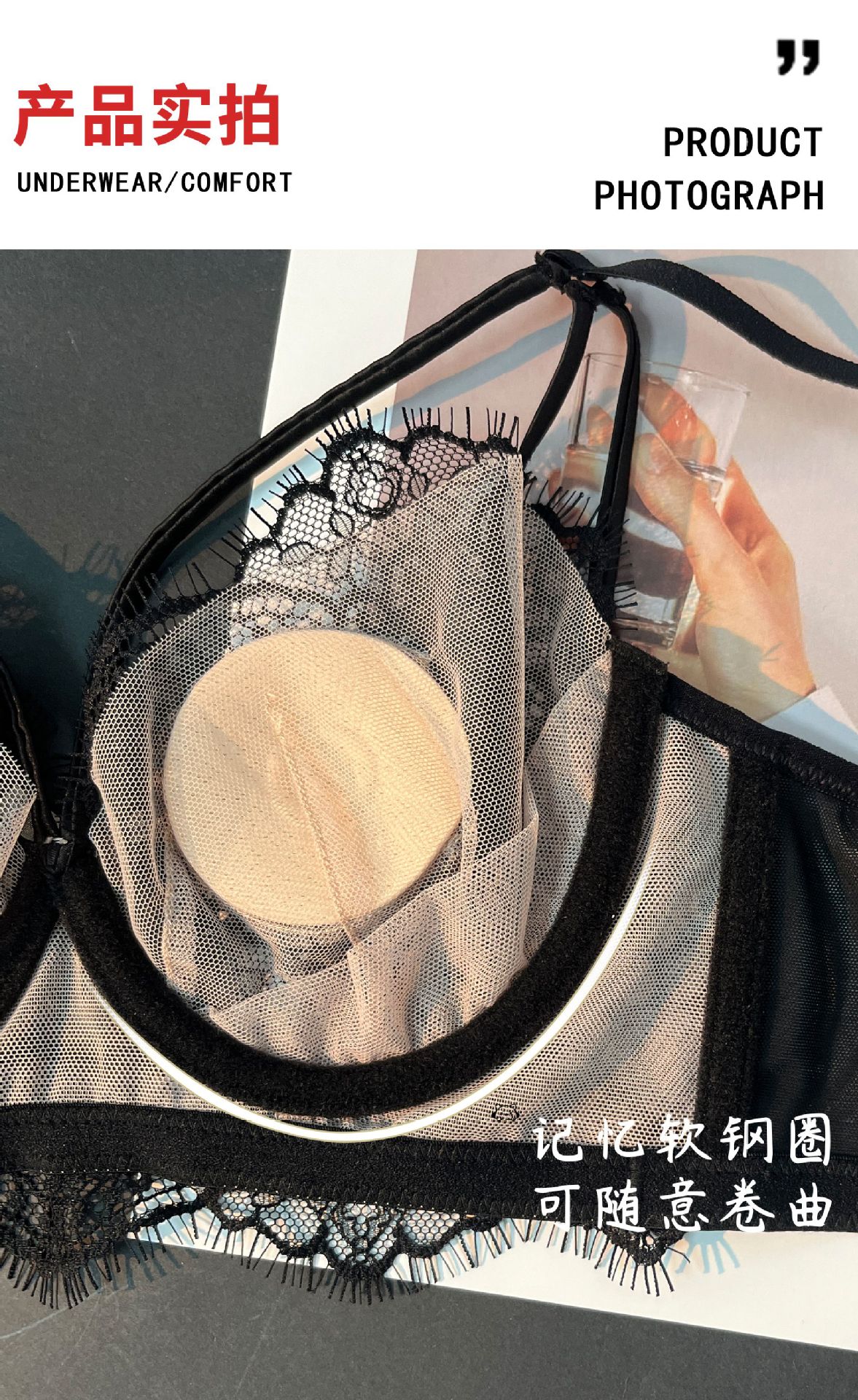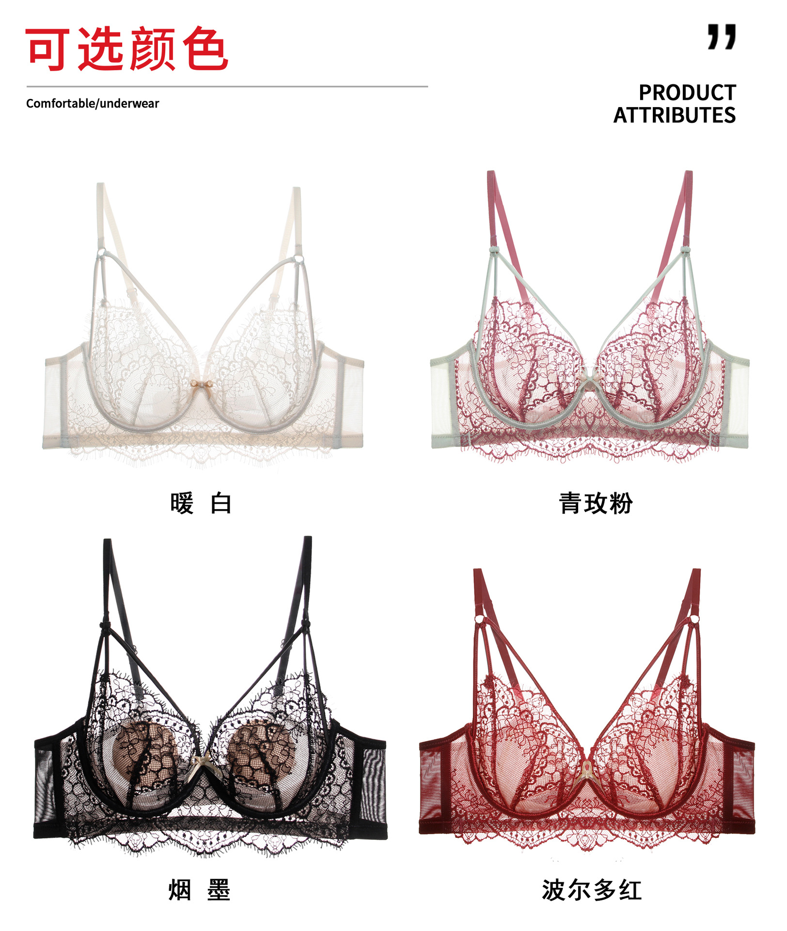 高端纯欲性感水晶杯内衣女夏季 超薄透气收副乳调整型蕾丝文胸罩