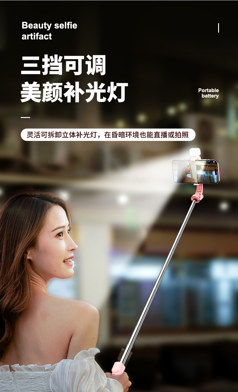 Селфи-палка для мобильного телефона, антидребезг, выдвижной штатив, портативный, дистанционное управление, живая трансляция, фотоартефакт, держатель для мобильного телефона, заполняющий свет
