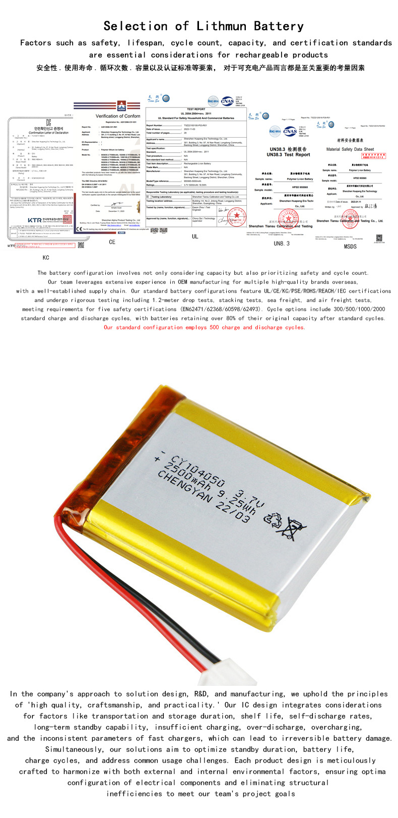 电池:2000mAh KC/CCC/CE/UL/IEC/PSE/UN38.3认证聚合物锂电池