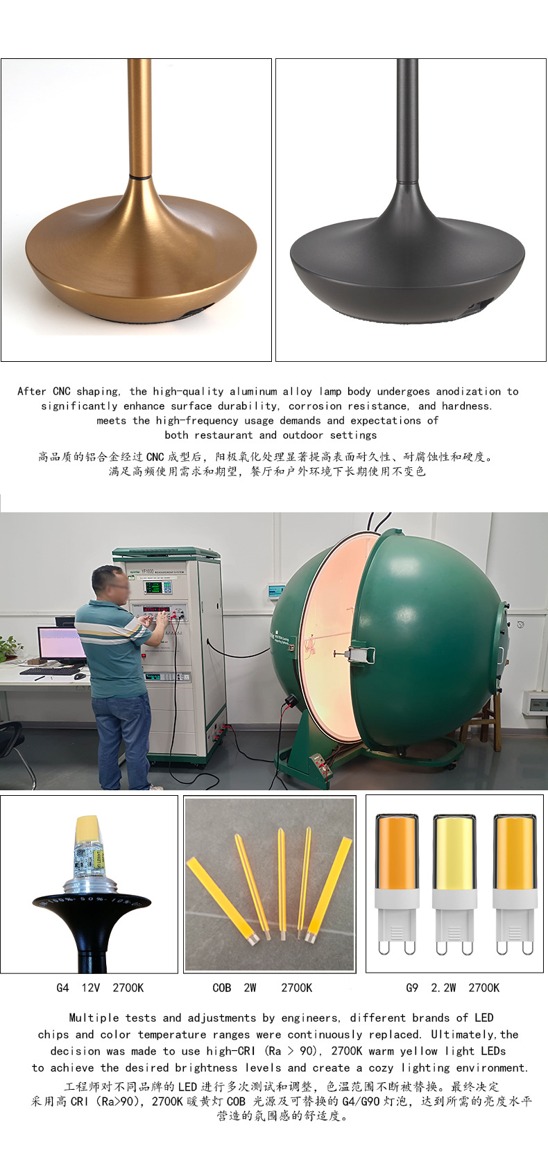 功率:G4/G9 12V 2W【3-6-15小时,些方案尽量插电使用】/ COB 3V 1.68W【9-20-70小时】