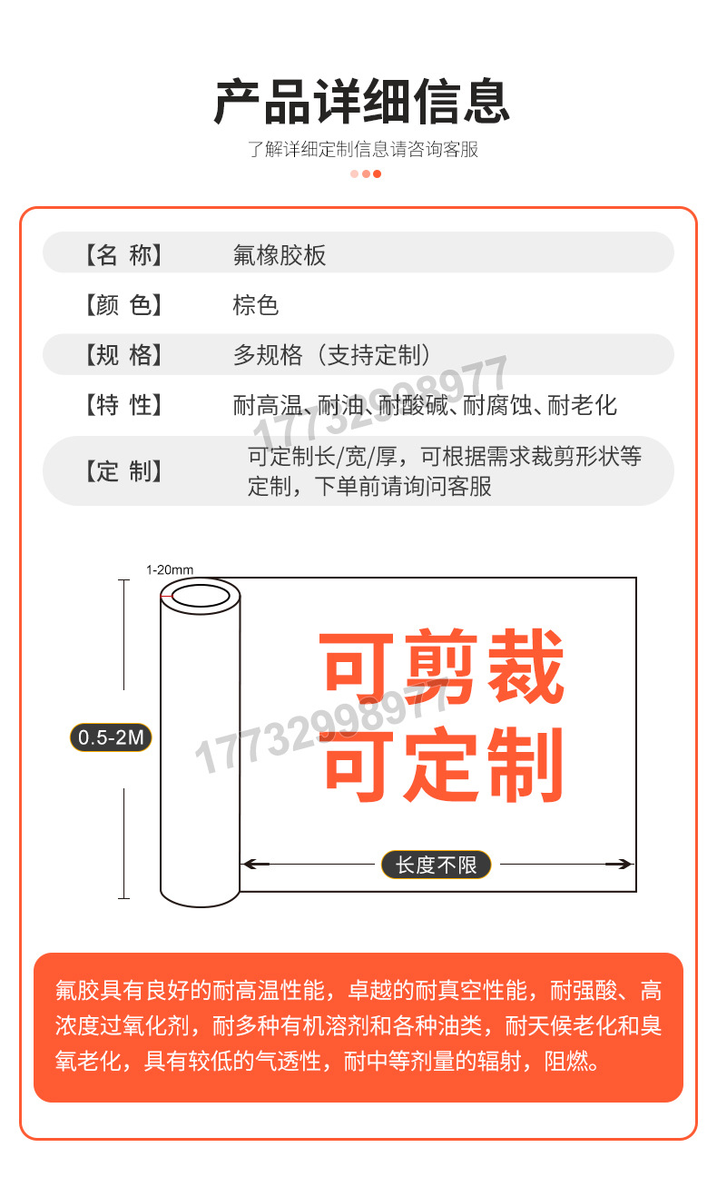 Плита из фторорезины FKM коричневая кислотостойкая и щелочестойкая коррозионно-стойкая высокая температура бензин и дизельная фторорезиновая подложка