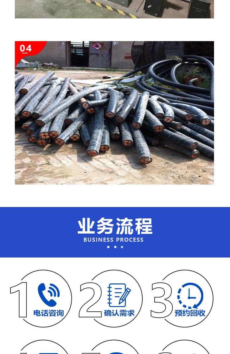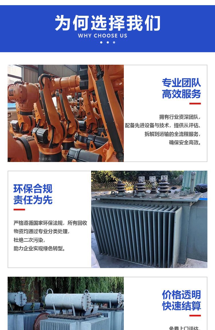 三、废旧废钢回收:电动机,发电机组、废旧变压器,配电柜,中央空调、机床、锅炉等废旧产品。