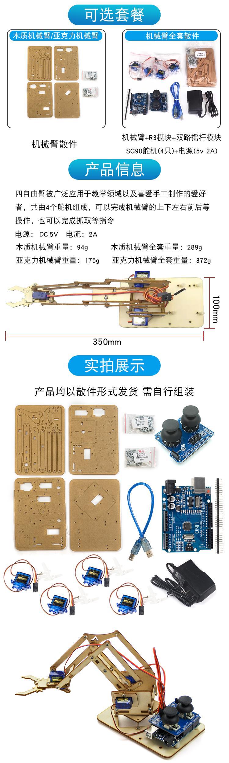 Роботизированная рука с четырьмя степенями свободы акриловая сборка набор Uno Maker научный эксперимент DIY детали
