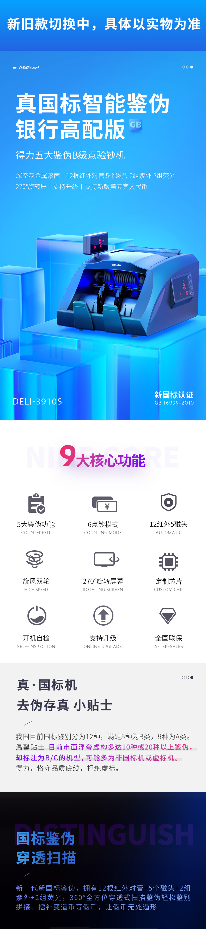 Новая версия детектора банкнот Deli нового национального стандарта уровня B специальная машина для подсчета банкнот