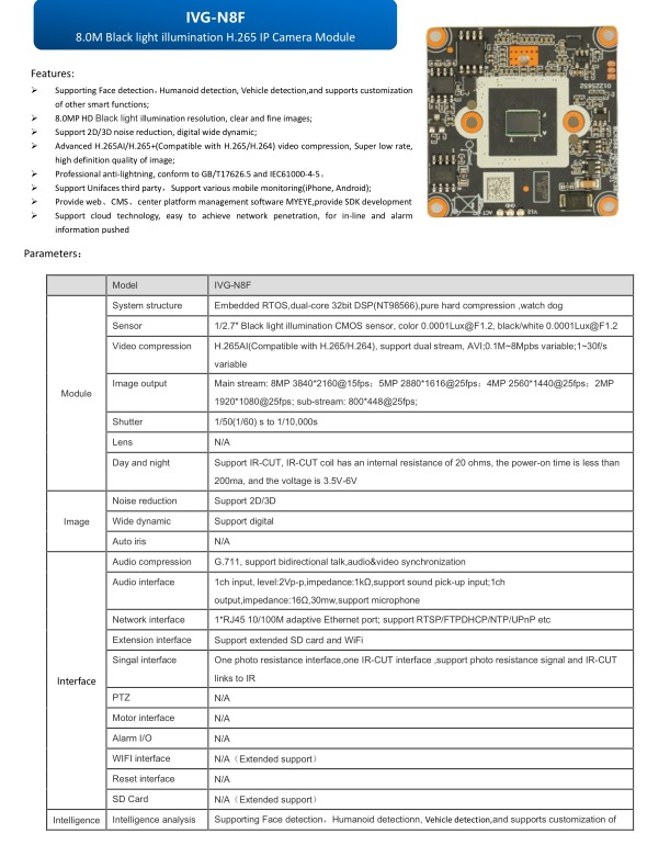 Модуль Xiongmai 8 миллионов N8F черный свет 4K Nt98566-Sc8239 IP высокое разрешение сетевой мониторинг модуль
