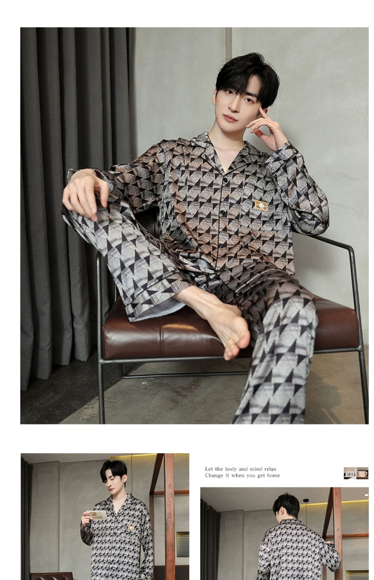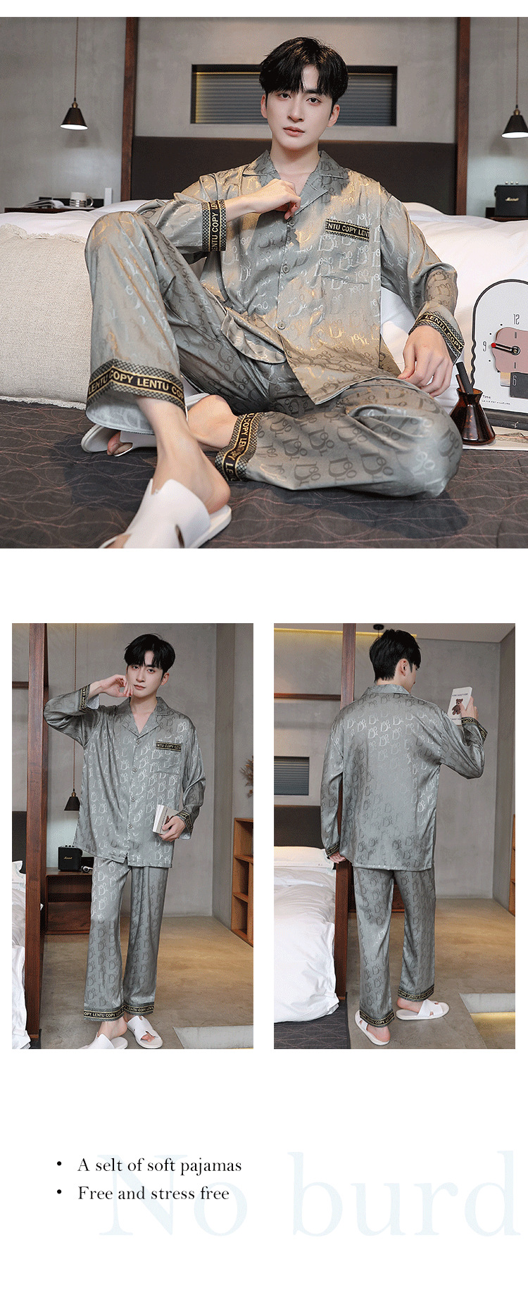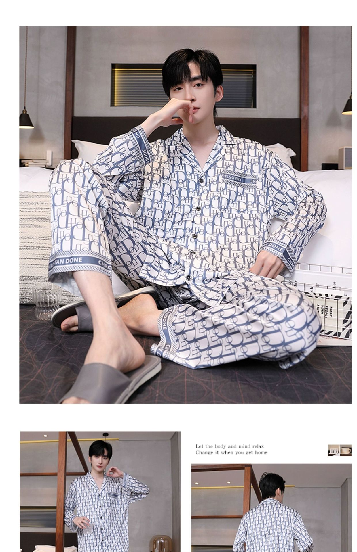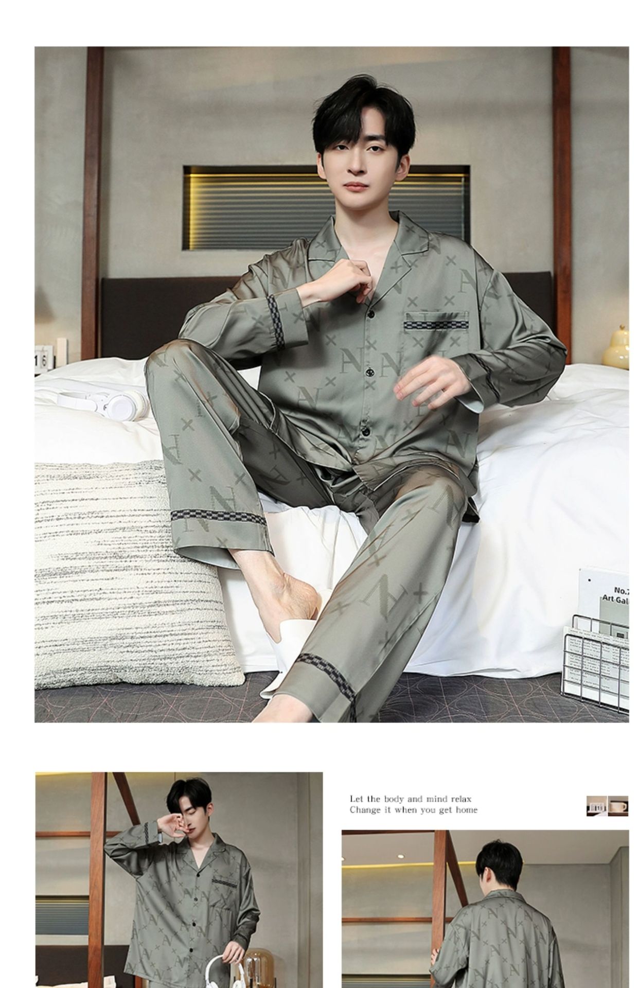 Мужская пижама, весна и осень, 2025 новый, льняной шелк, длинный рукав, молодежный, большой размер, можно носить на улице, комплект домашней одежды
