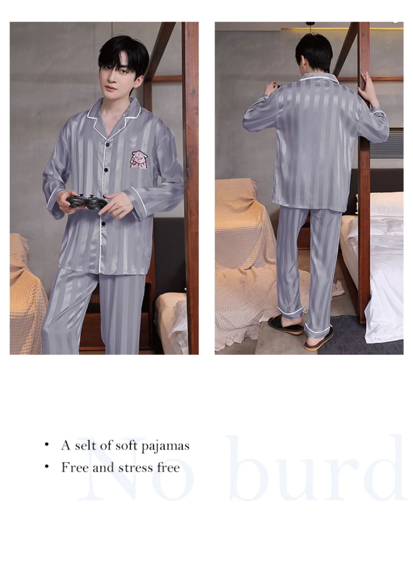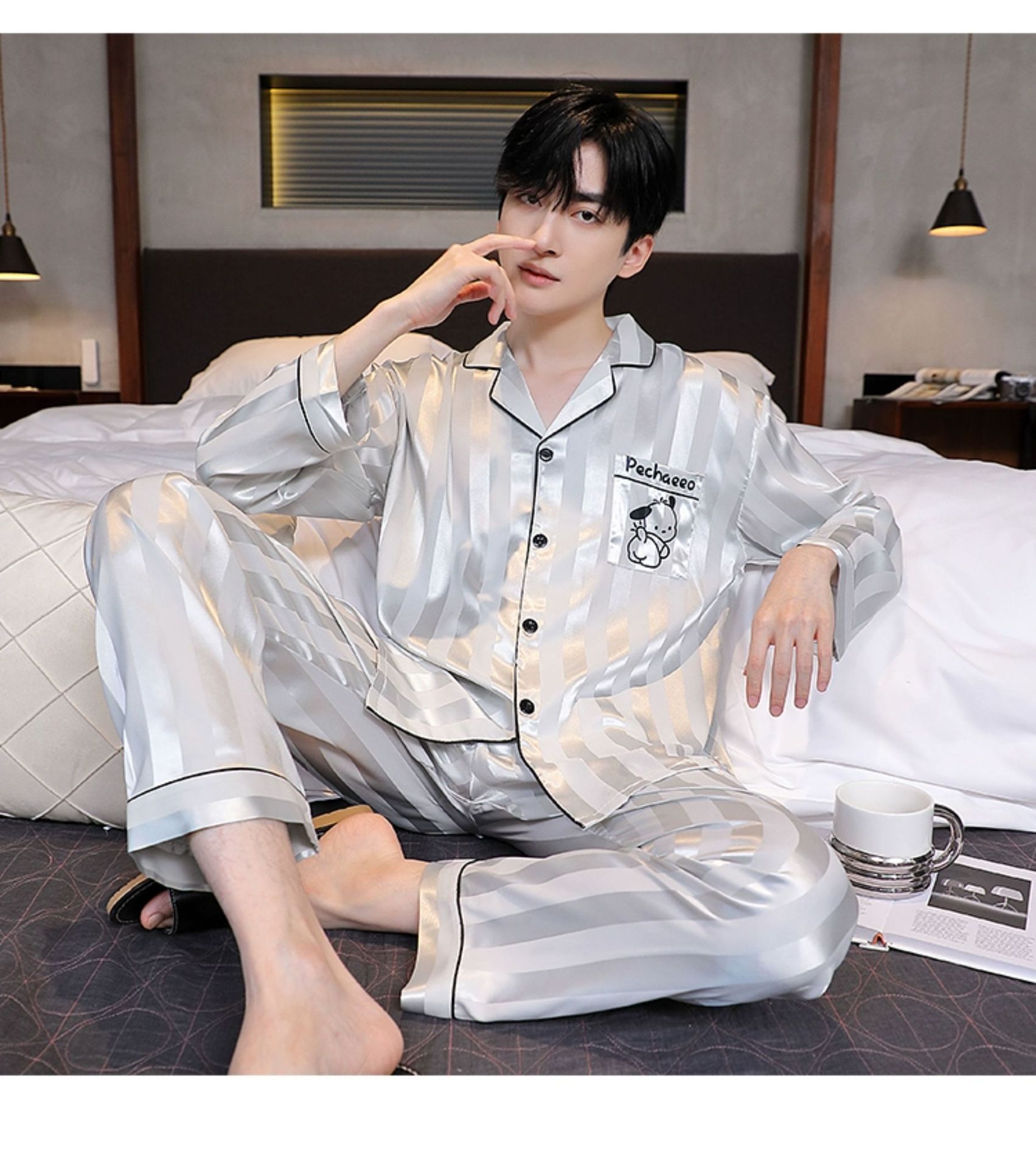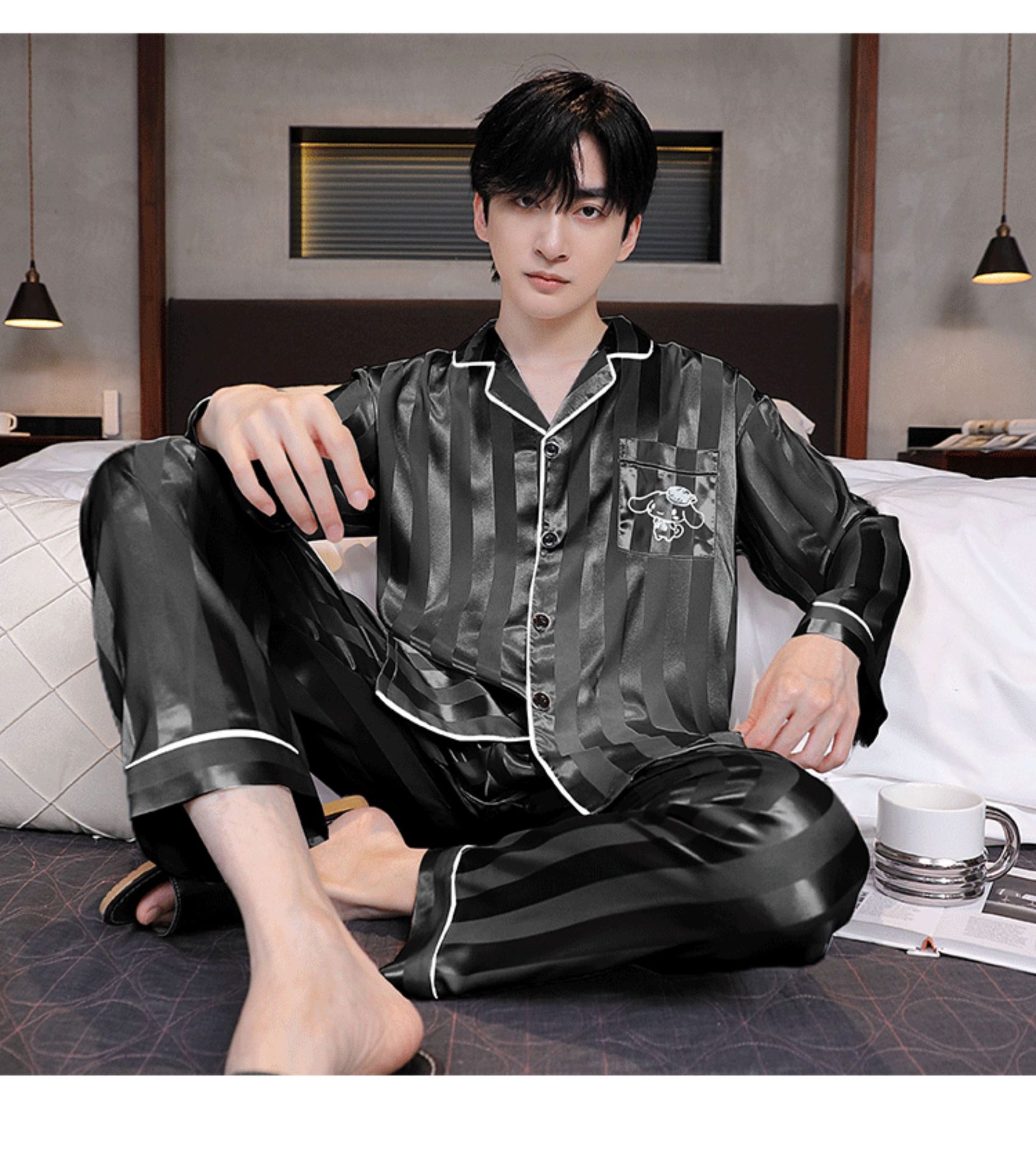 Мужская пижама, весна и осень, 2025 новый, льняной шелк, длинный рукав, молодежный, большой размер, можно носить на улице, комплект домашней одежды