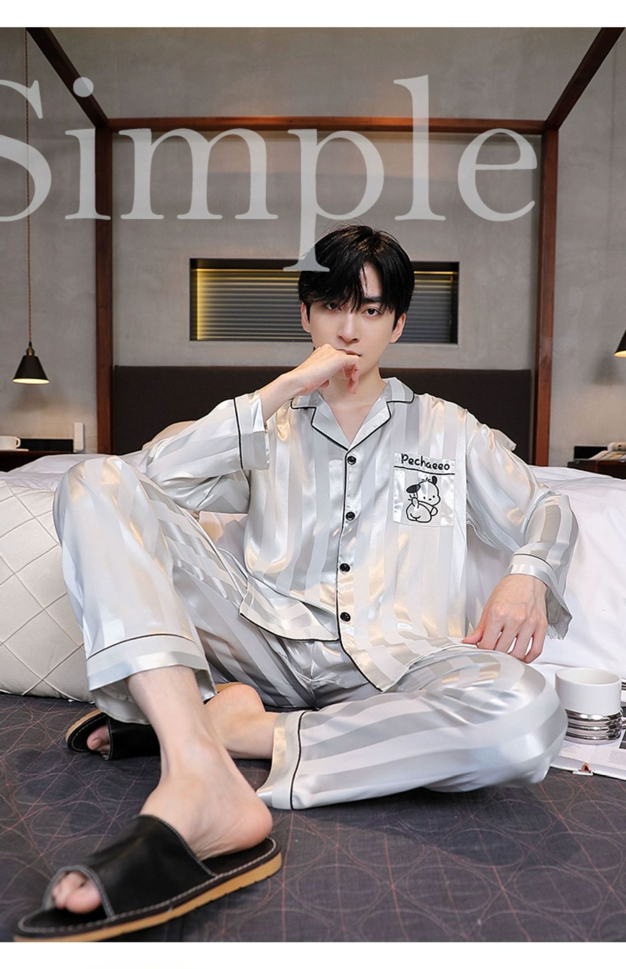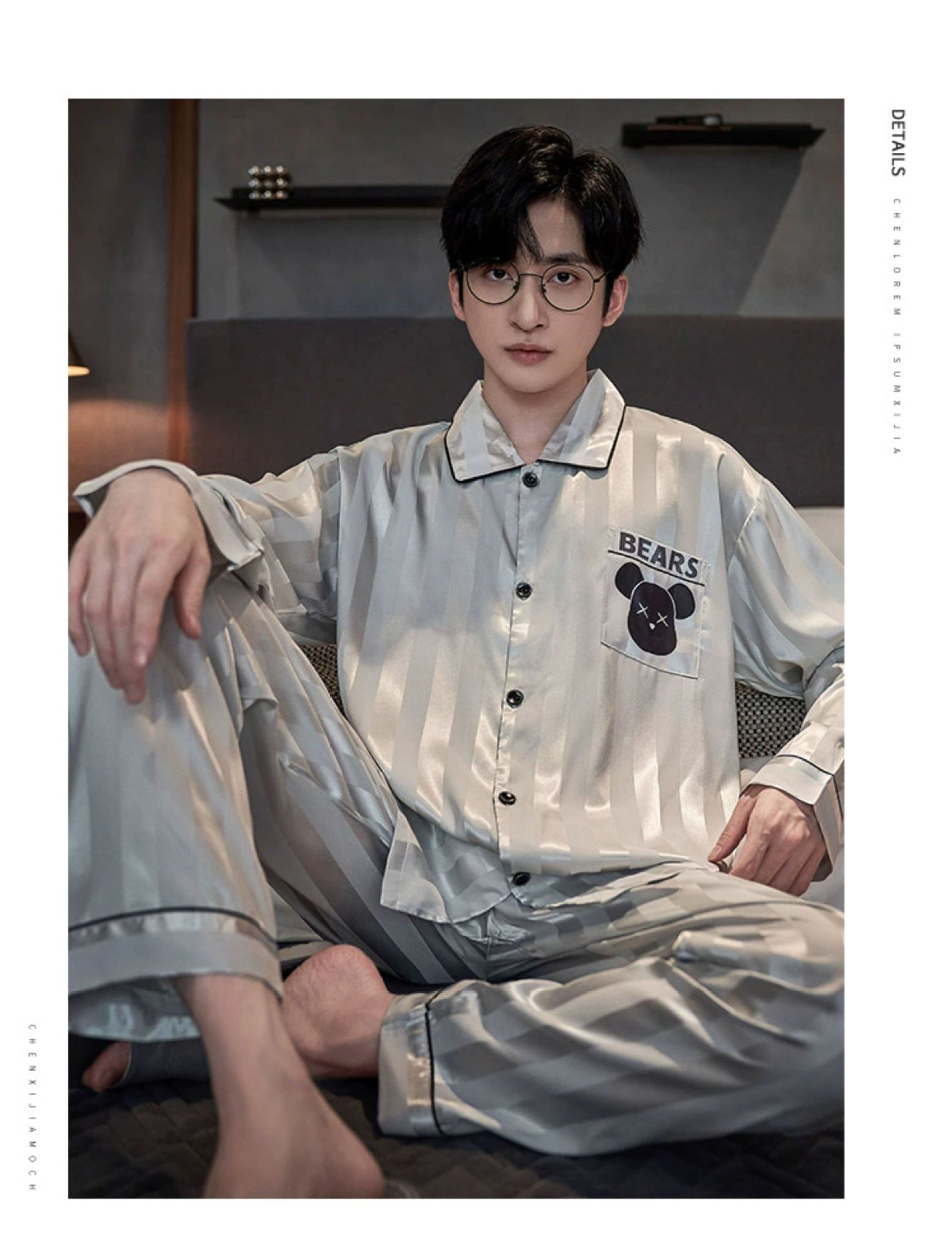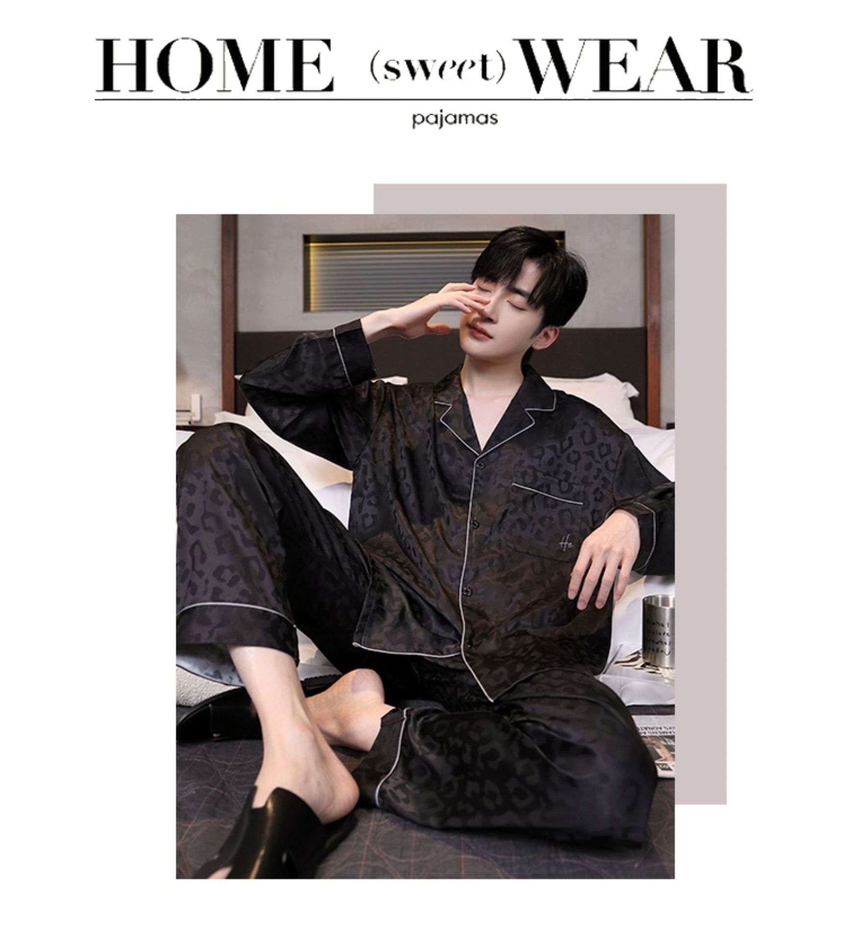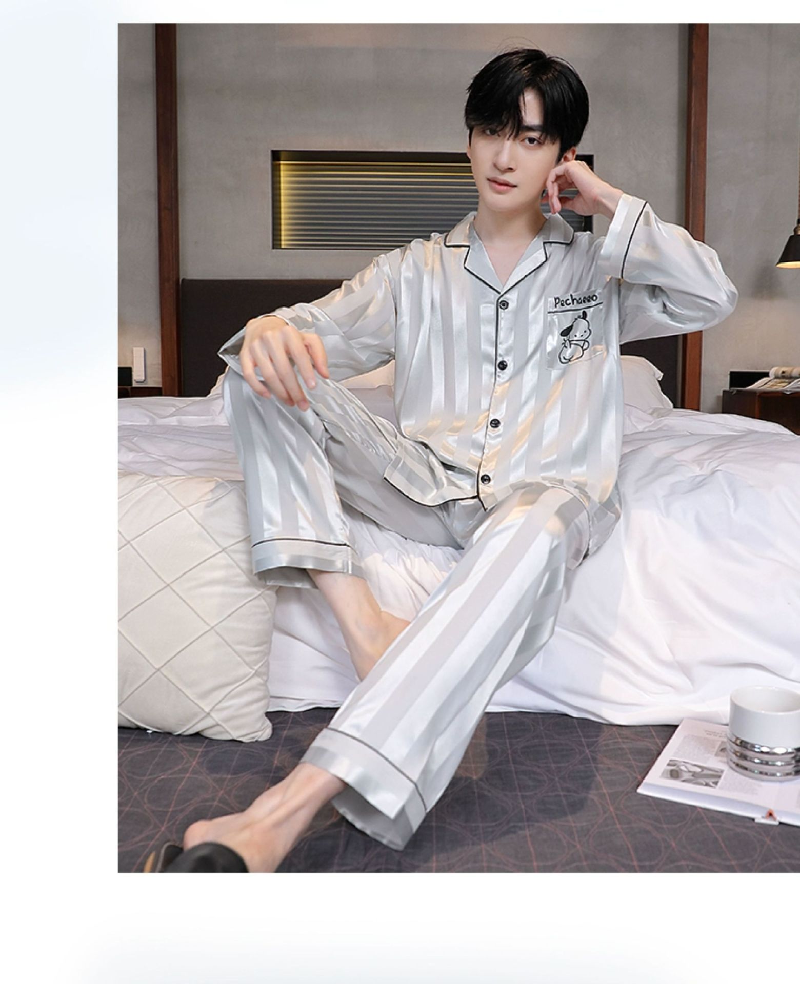 Мужская пижама, весна и осень, 2025 новый, льняной шелк, длинный рукав, молодежный, большой размер, можно носить на улице, комплект домашней одежды