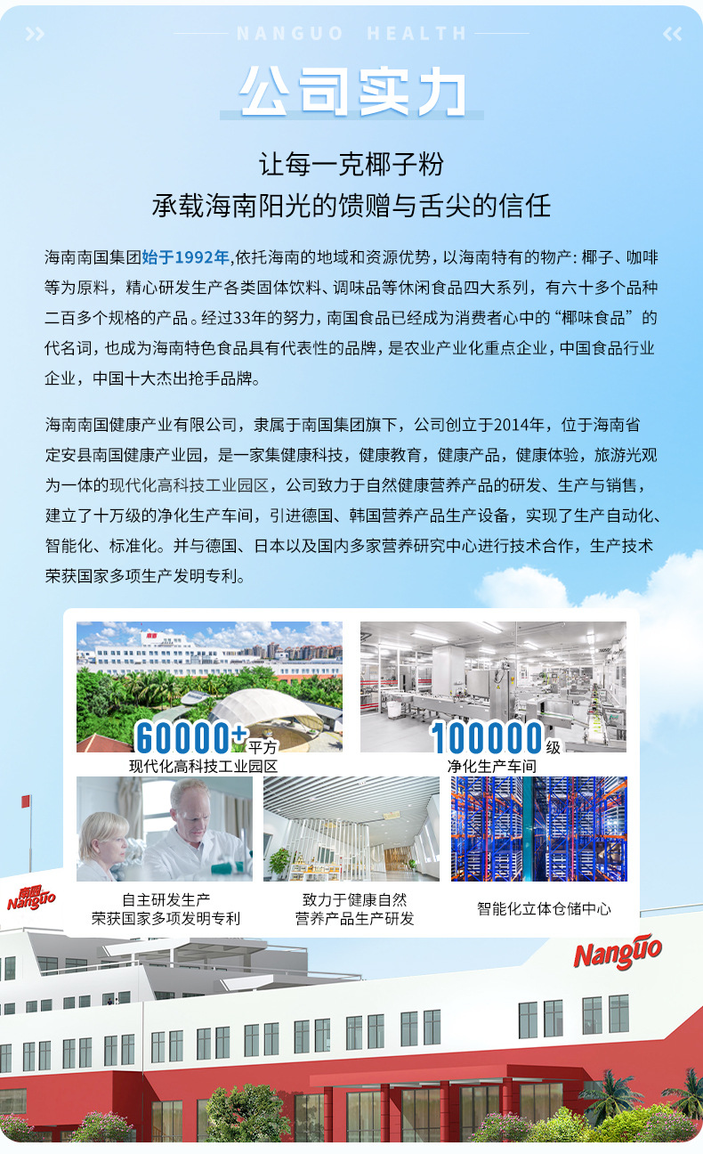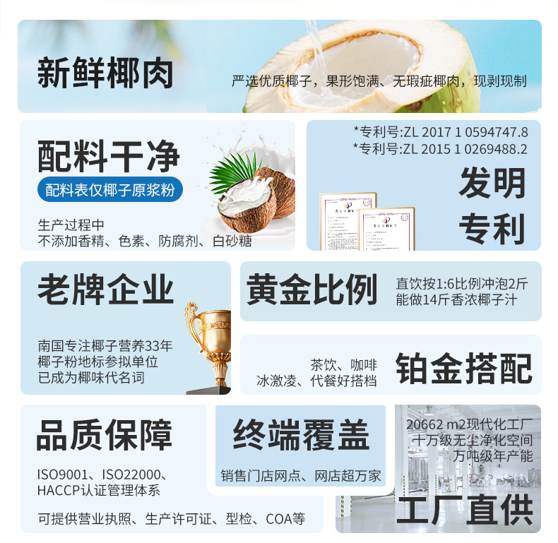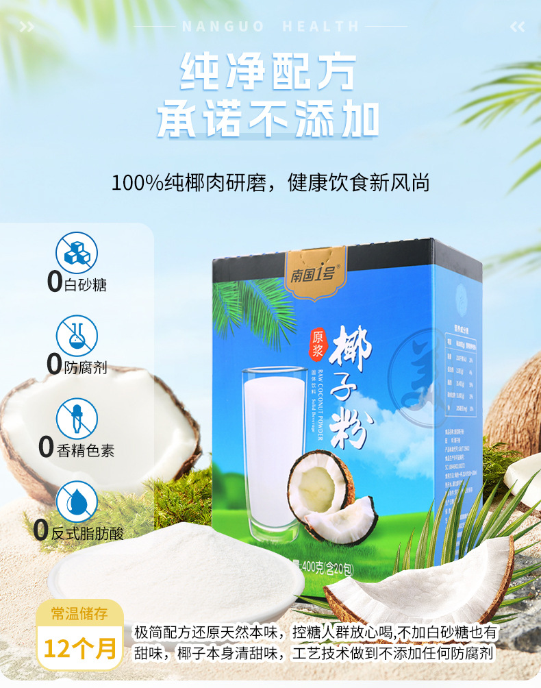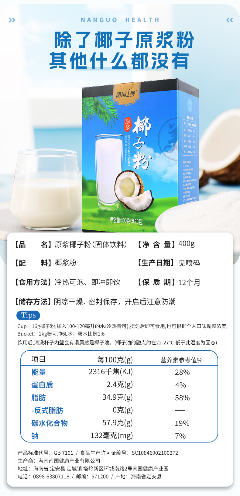 Порошок кокоса Nanguo 400г Твердый напиток Кокосовое молоко Порошок Специальность Хайнань Оптовая замена завтрака Доставка
