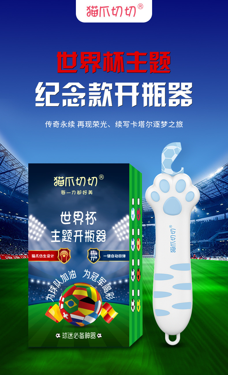 Нож для распаковки в форме кошачьей лапы, универсальный открыватель бутылок на тему чемпионата мира, многофункциональный открыватель для банок