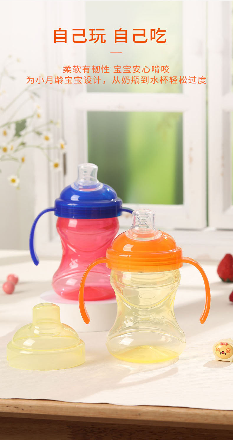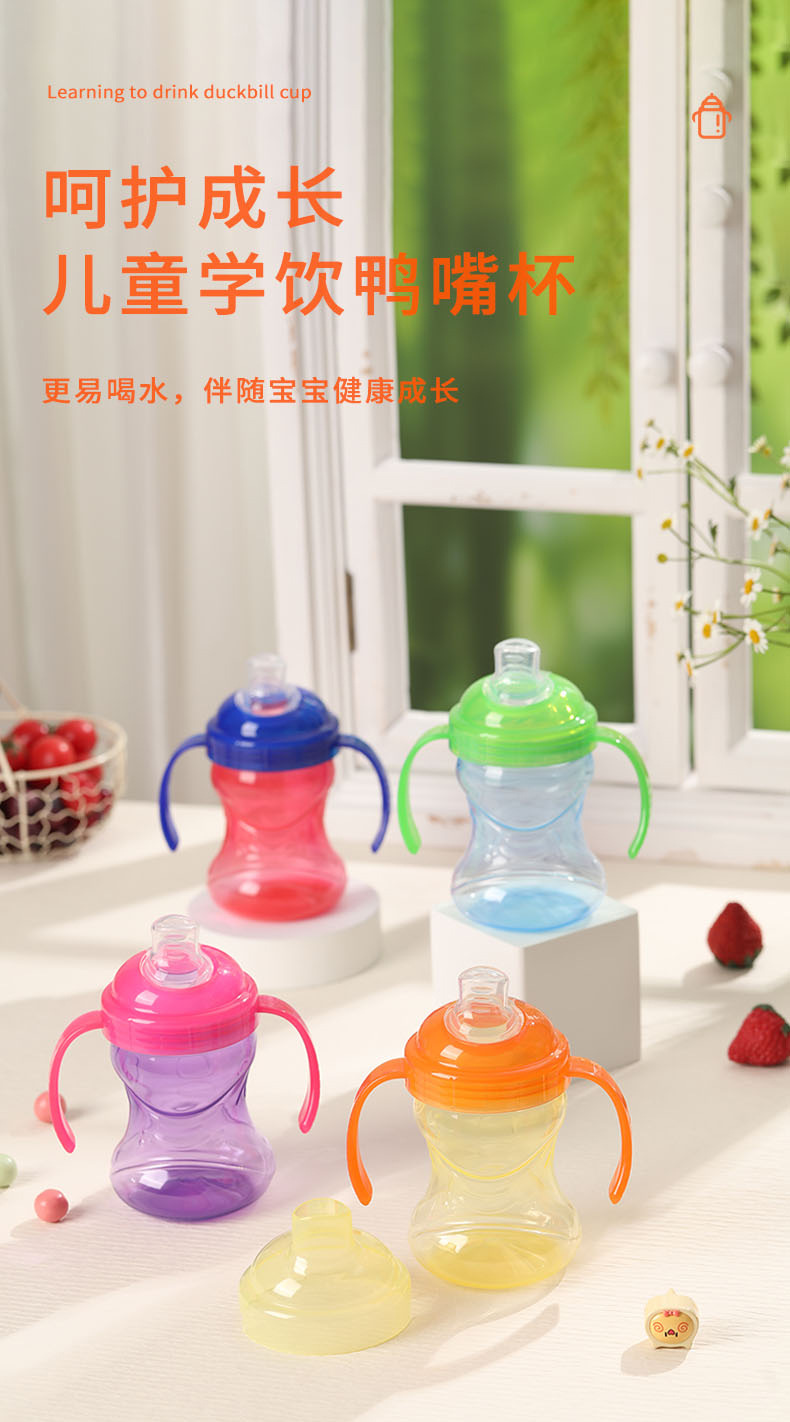 Силиконовая водяная чашка с уткой для детей старше 6 месяцев, обучающая чашка для питья, двойная ручка, нескользящая, легкая в удержании, тренировка 270