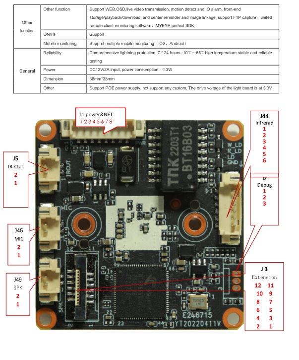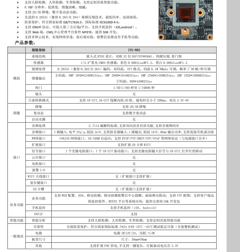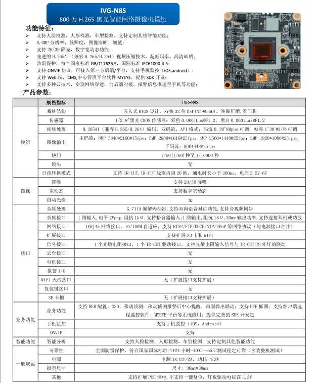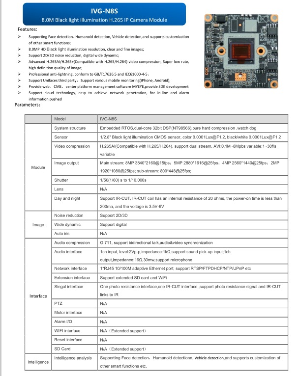 Модуль Xiongmai 8 миллионов N8S черный свет 4K Nt98566-Imx415 модуль HD сетевой IP Xm