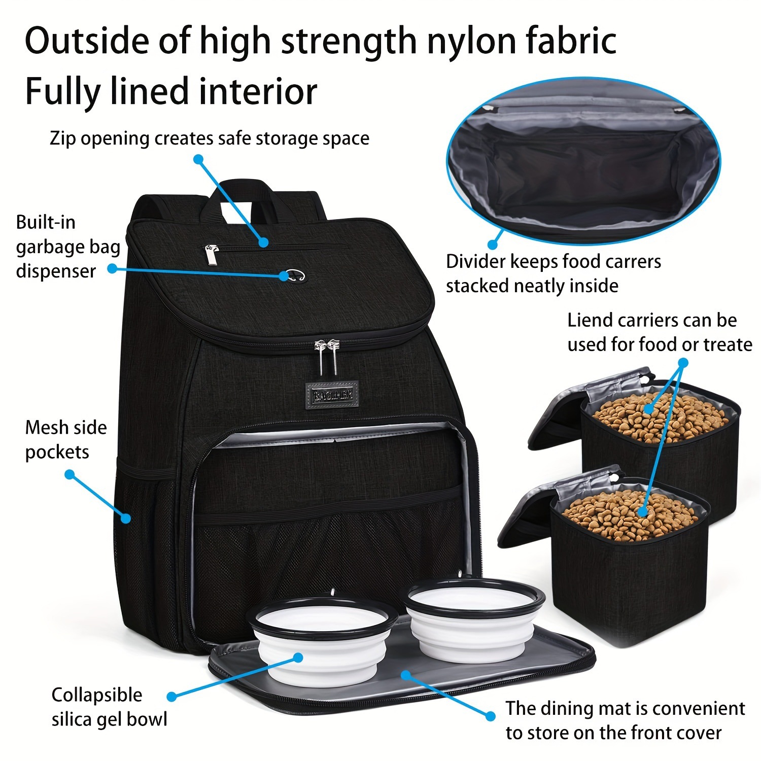 2025 новый кросс-бордерный прочный рюкзак для путешествий с питомцем, 2 складных силиконовых миски